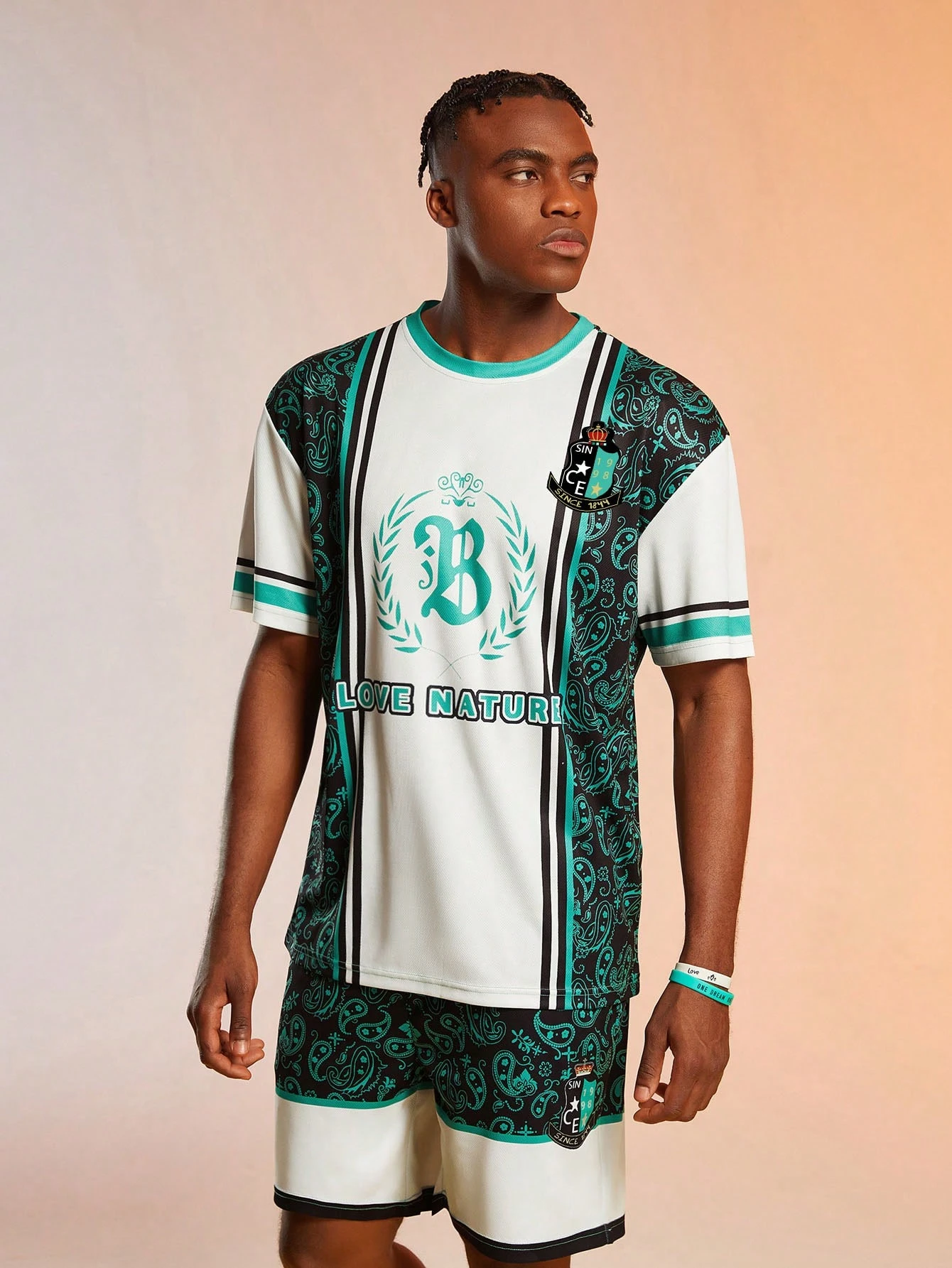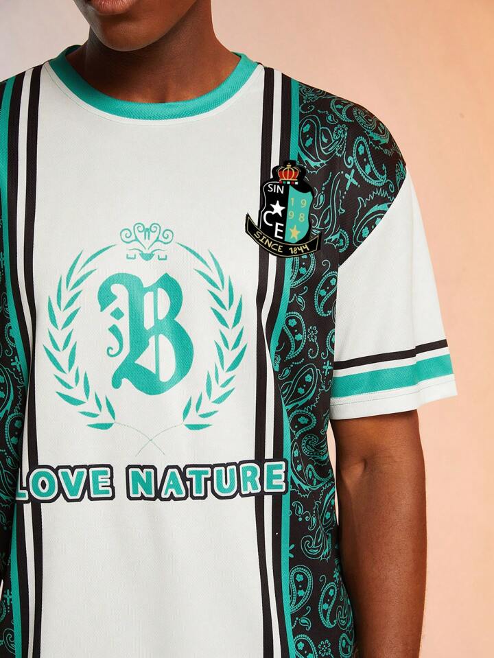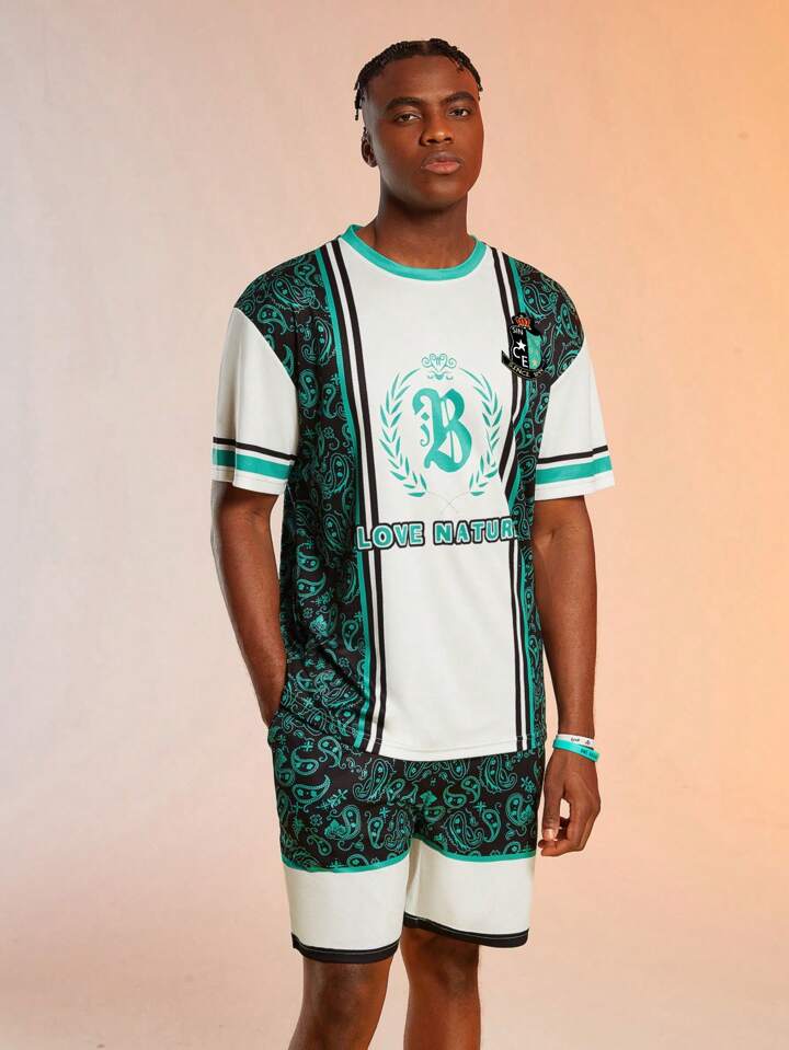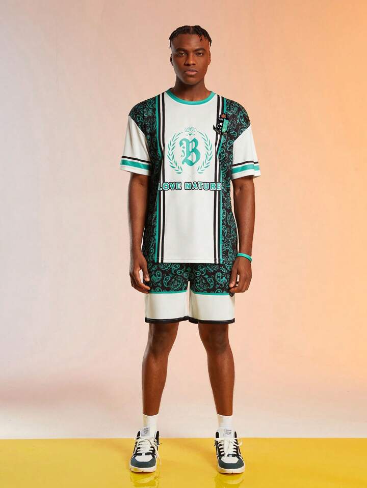 Street Life Guys Paisley Letter Graphic Striped Trim Tee & Shorts