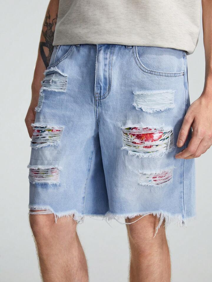 Street Life Guys Ripped Raw Hem Denim Shorts