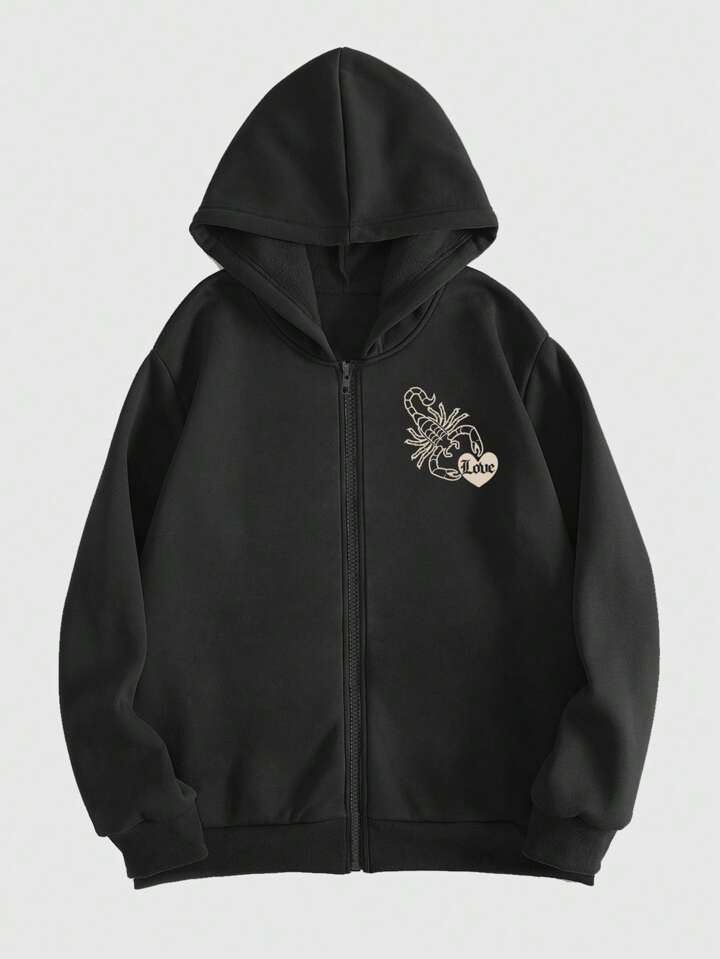 Street Life Guys Scorpion & Letter Graphic Thermal Lined Hoodie