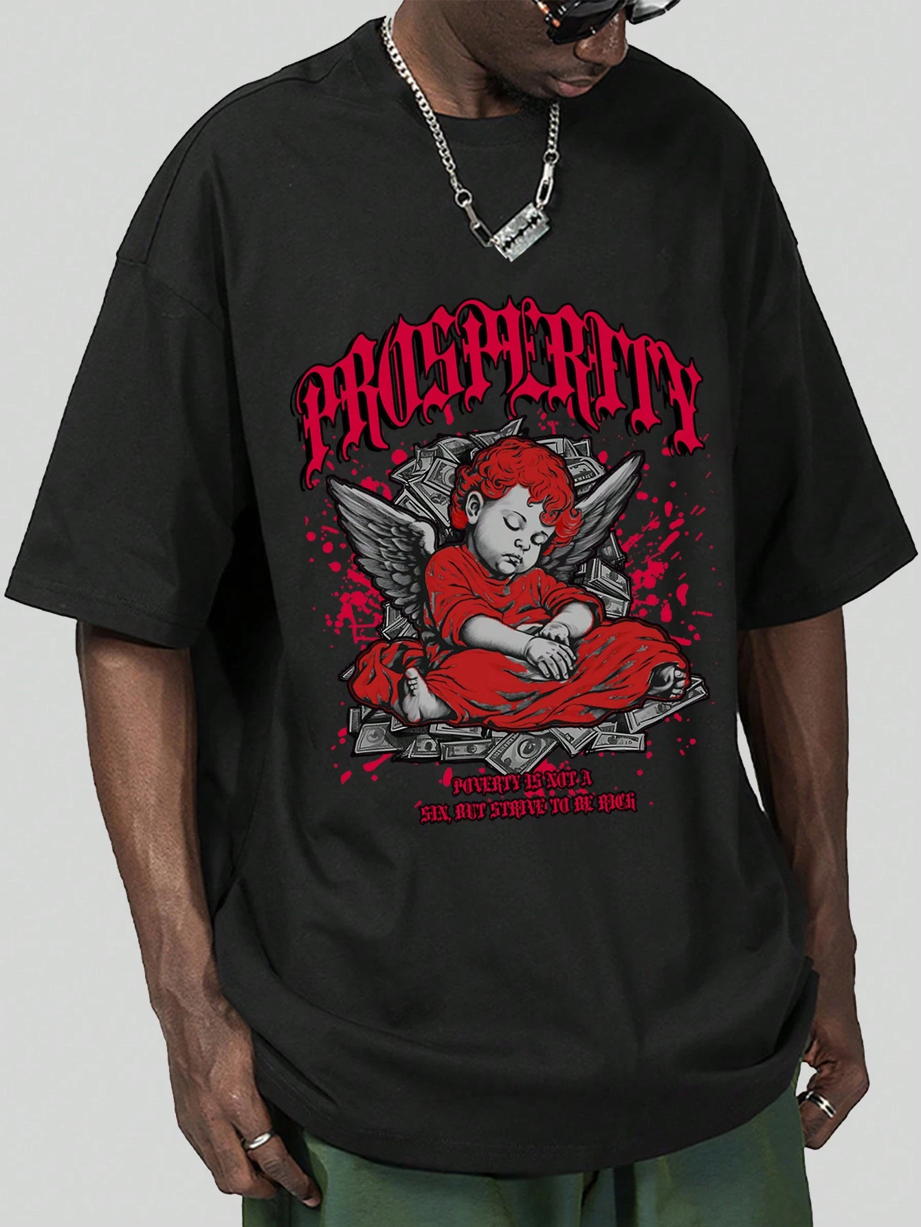 Street Life Guys Slogan & Figure Graphic Drop Shoulder Tee
