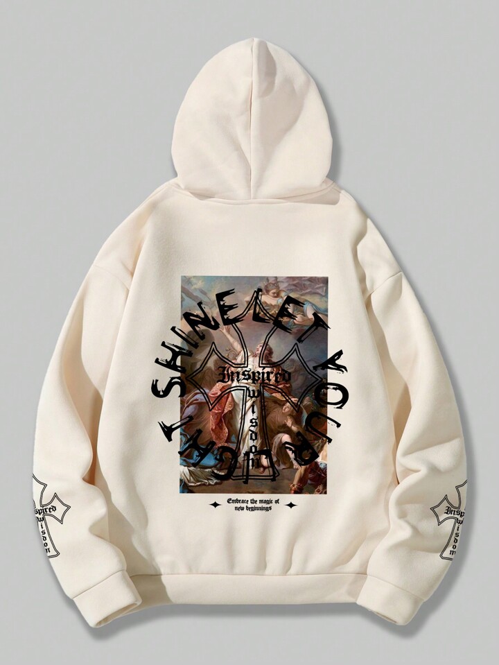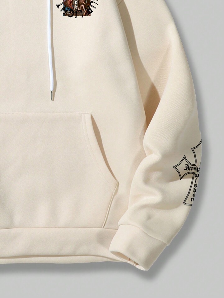 Street Life Guys Slogan & Figure Graphic Kangaroo Pocket Drawstring Hoodie