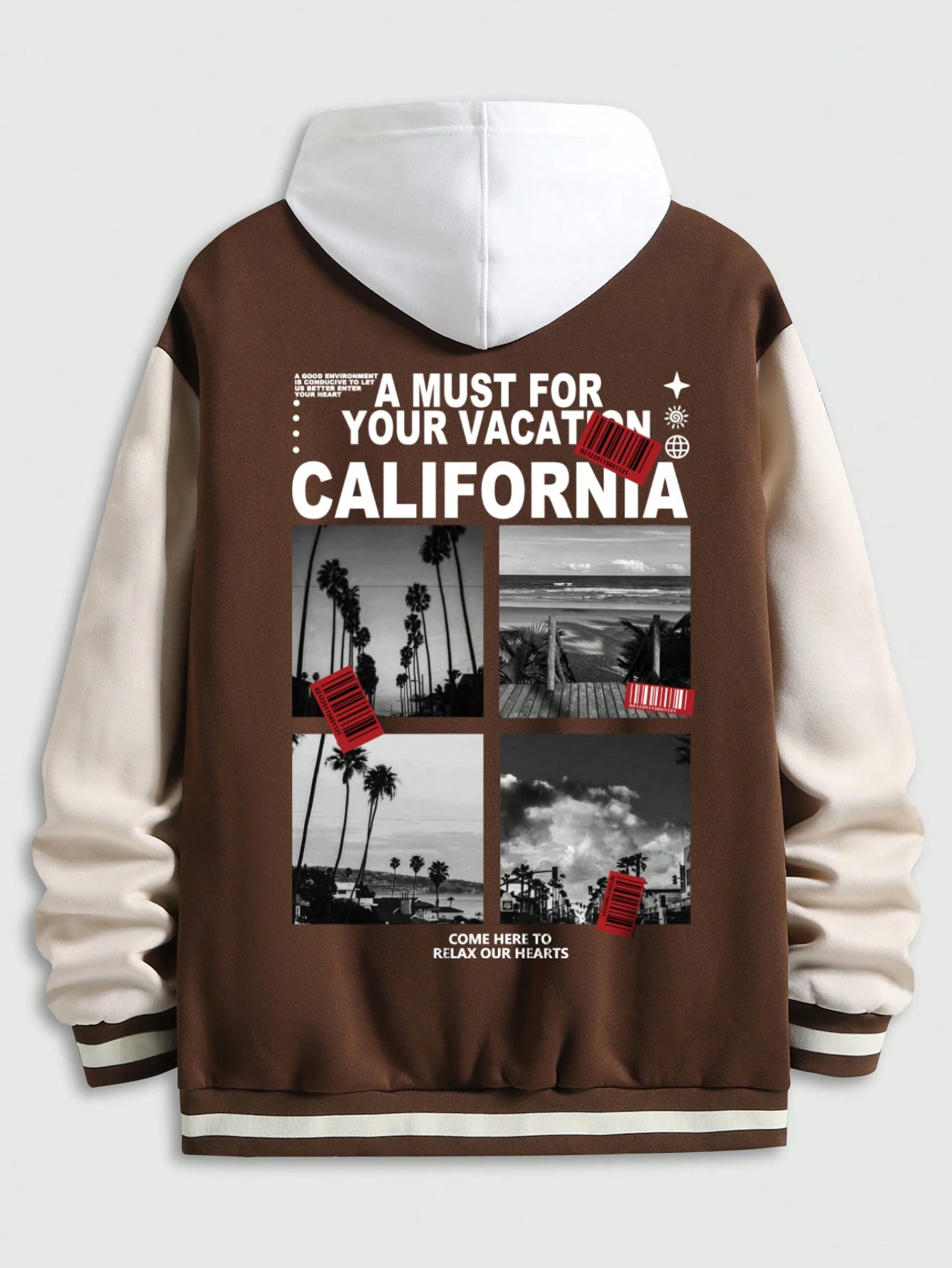 Street Life Guys Slogan Graphic Two Tone Varsity Jacket Without Hoodie