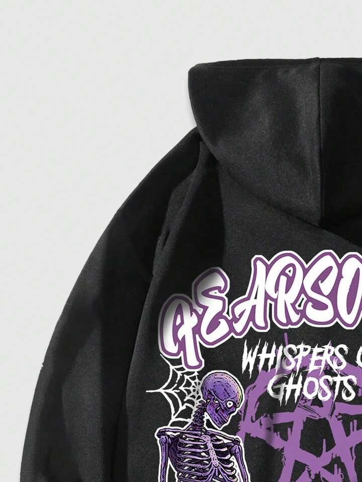 Street Life Guys Slogan Star & Skeleton Graphic Drawstring Hoodie