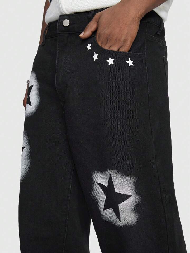 Street Life Guys Star Print Straight Leg Jeans