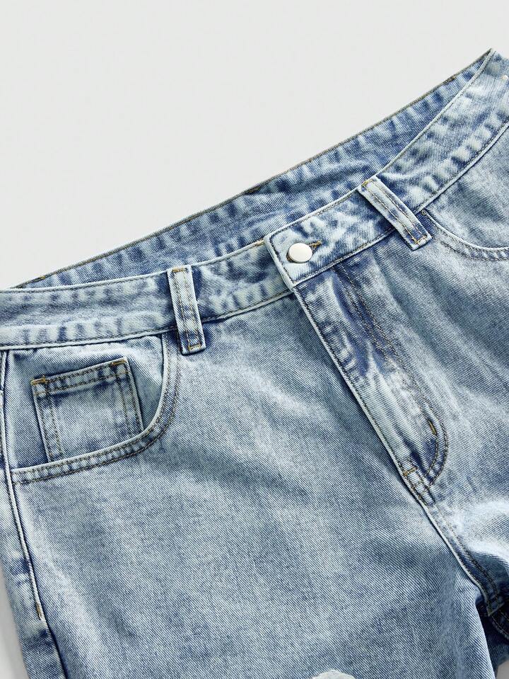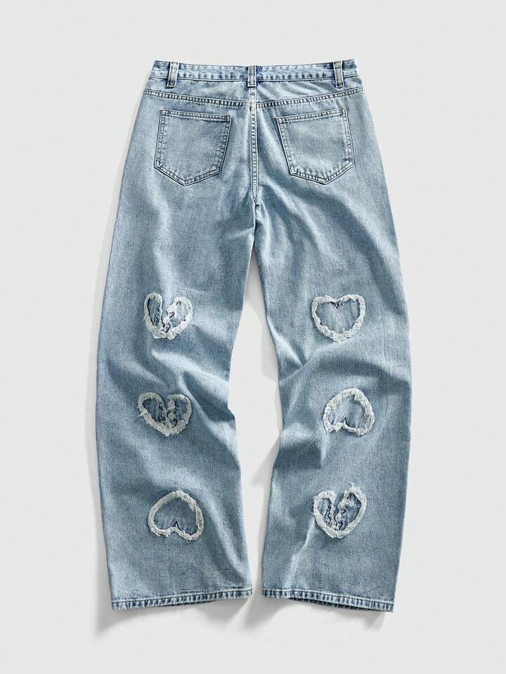 Street Life Light Wash Heart Denim Jeans With Embroidered Patch, Casual Style