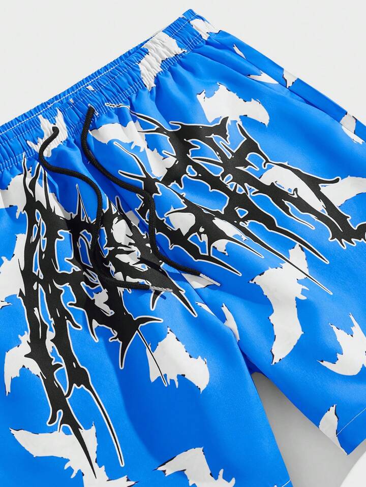 Street Life Men Bat Print Drawstring Waist Shorts, School