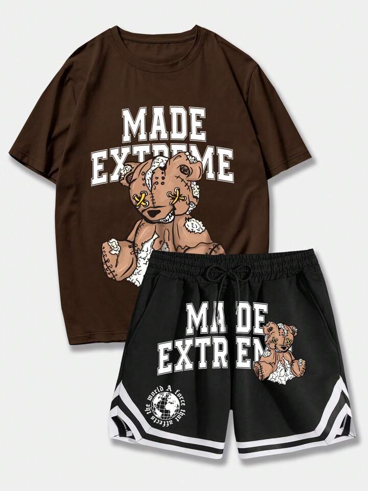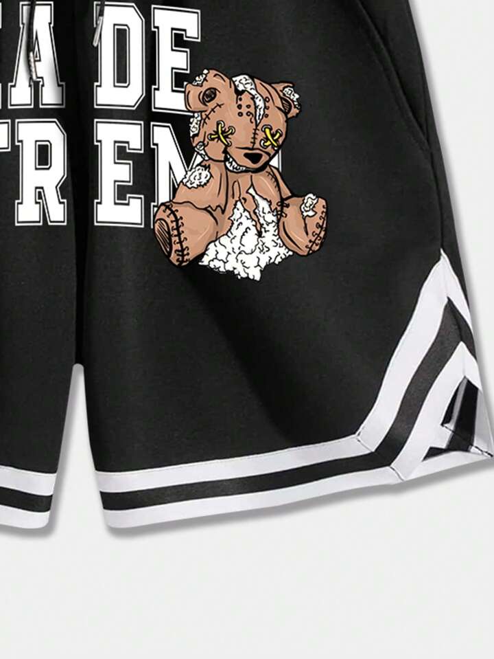 Street Life Men Bear & Letter Graphic Tee & Striped Trim Shorts