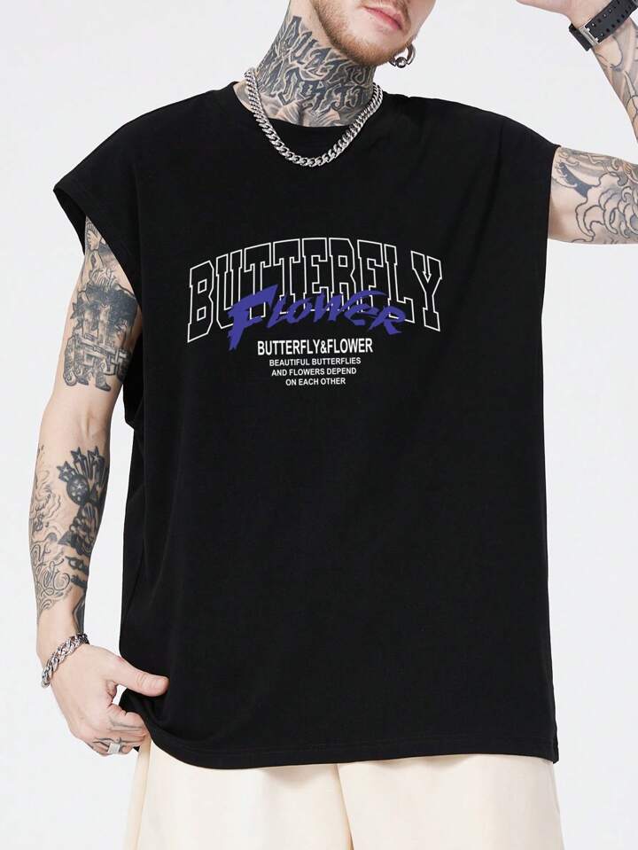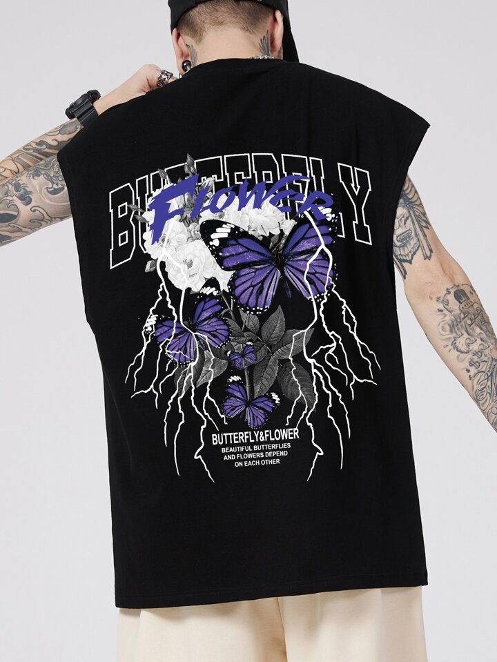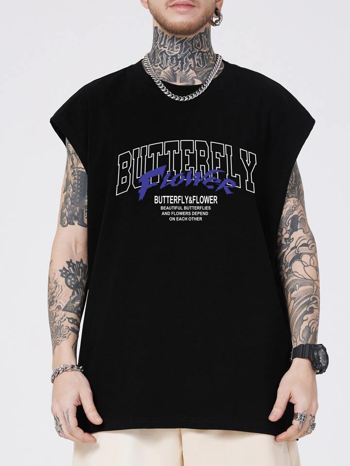 Street Life Men Butterfly & Slogan Graphic Tank Top, School