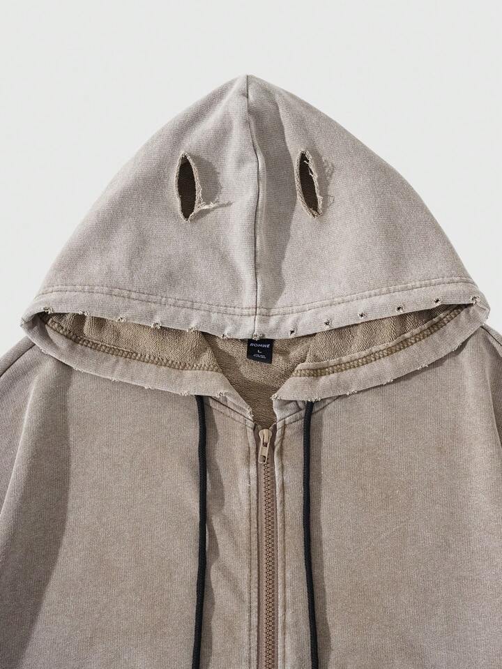 Street Life Men Casual Front Pocket Acid-Washed Zip Up Hoodie Sweatshirt