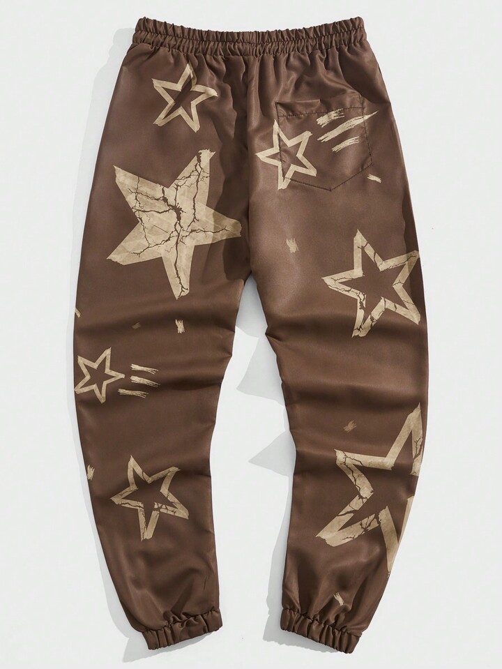 Street Life Men Drawstring Waist Five-Pointed Star Printed Pants