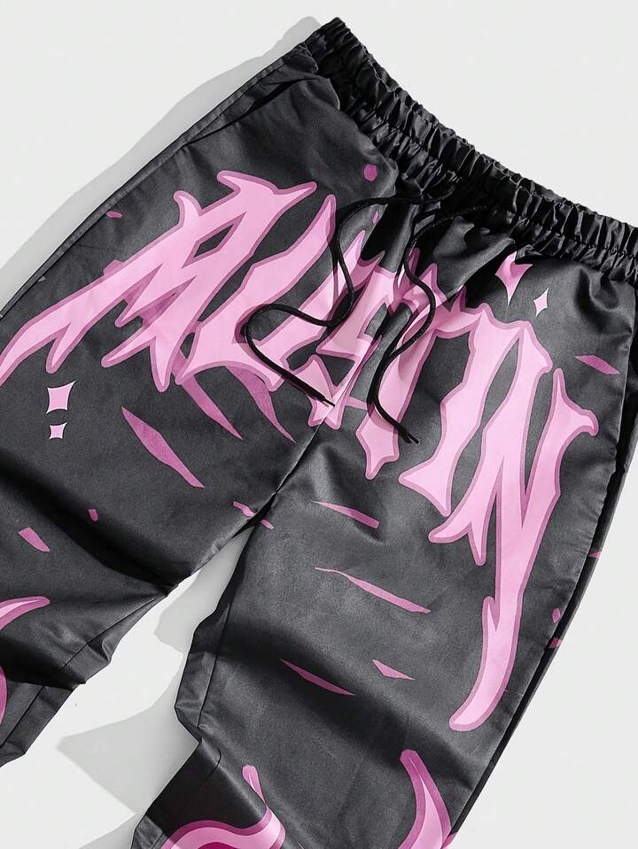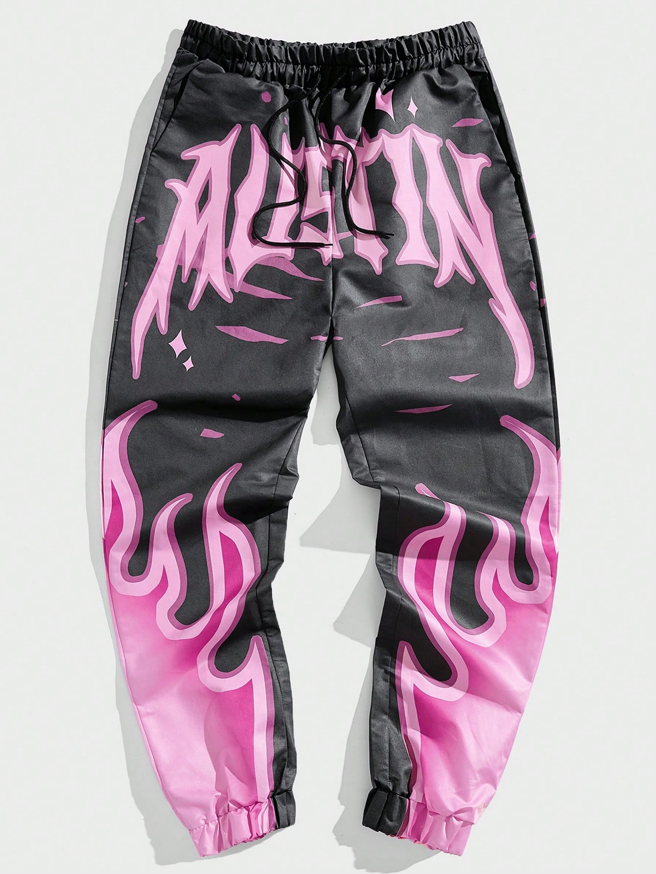 Street Life Men Fire & Letter Graphic Drawstring Waist Pants