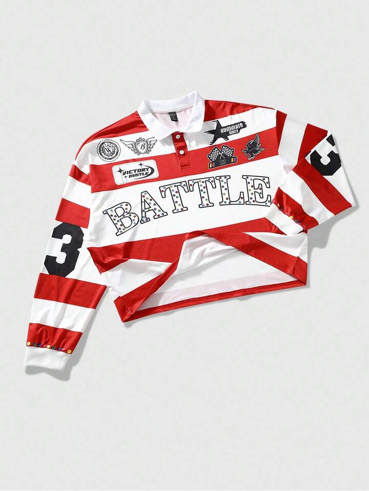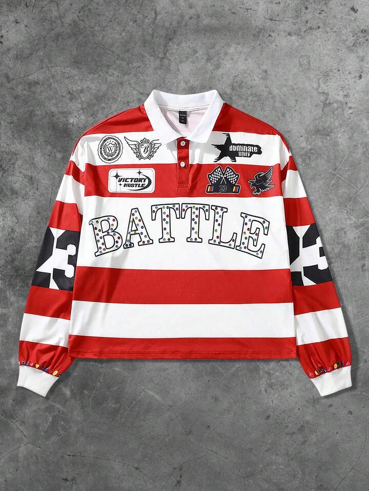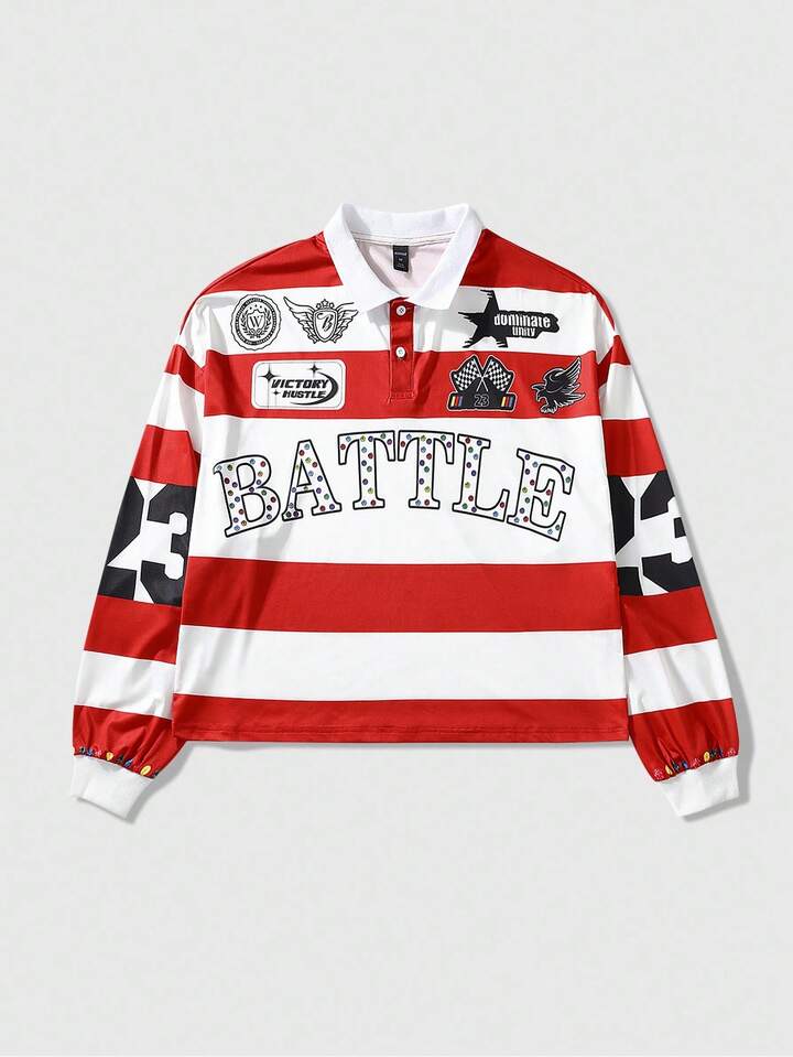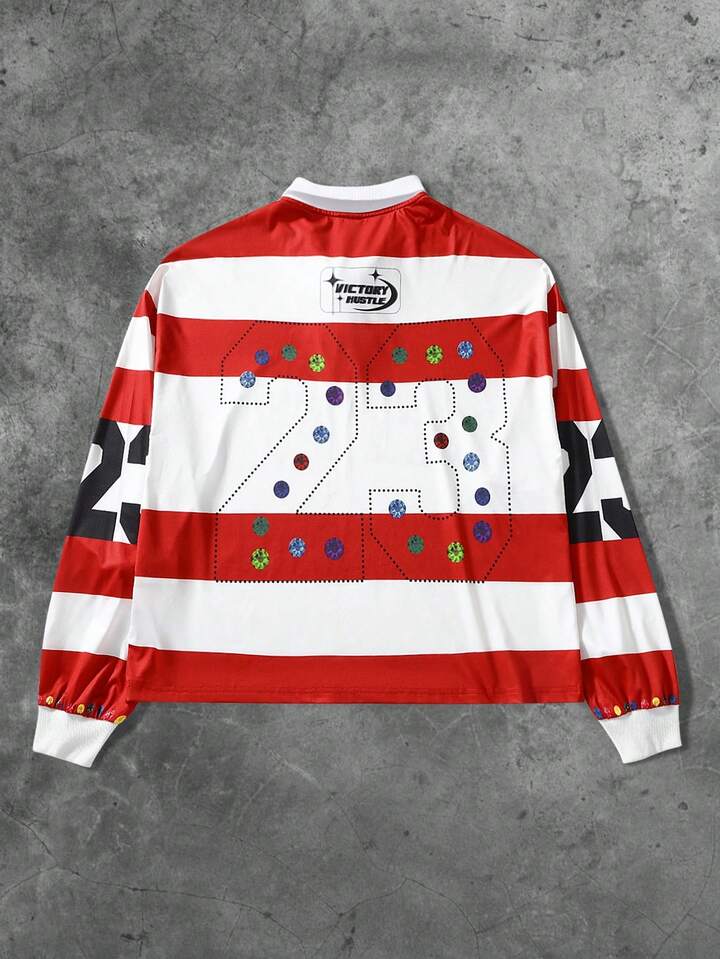 Street Life Men Half-Zip Casual Preppy Long Sleeve Versatile Digital Striped Sports T-Shirt, Fall