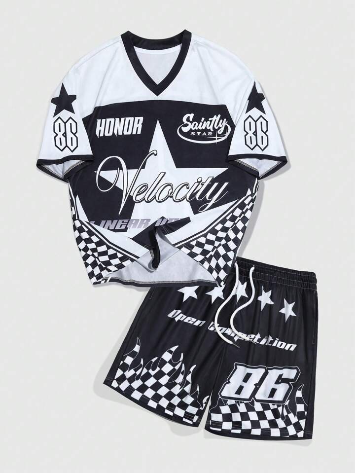Street Life Men Jersey Racing Print Sports T-Shirt And Shorts Set