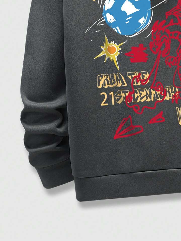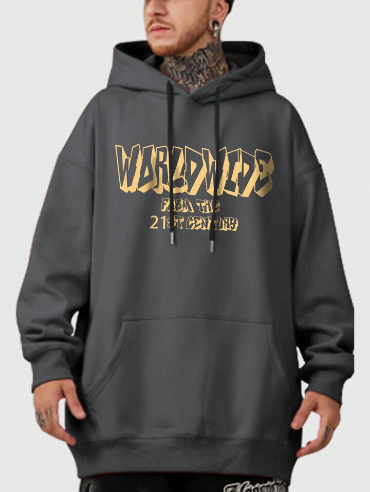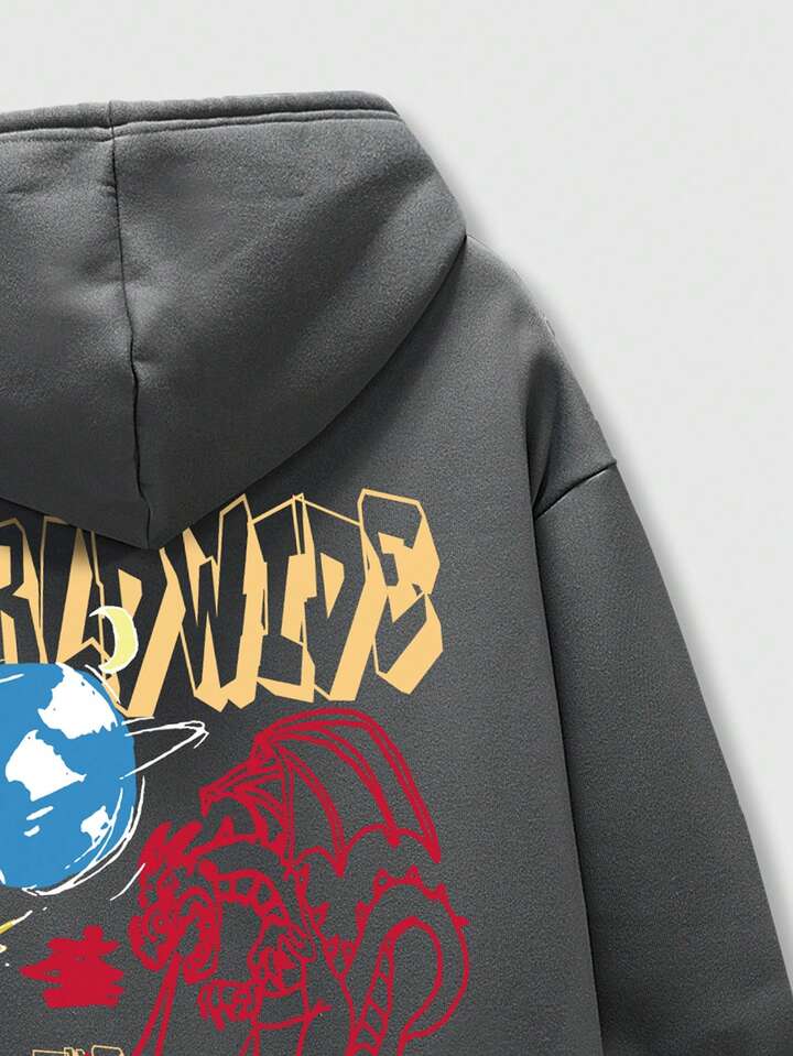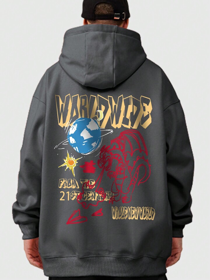 Street Life Men Letter Graphic Drawstring Hoodie