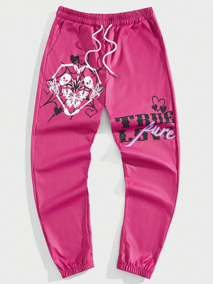 Street Life Men Letter Graphic Drawstring Waist Pants