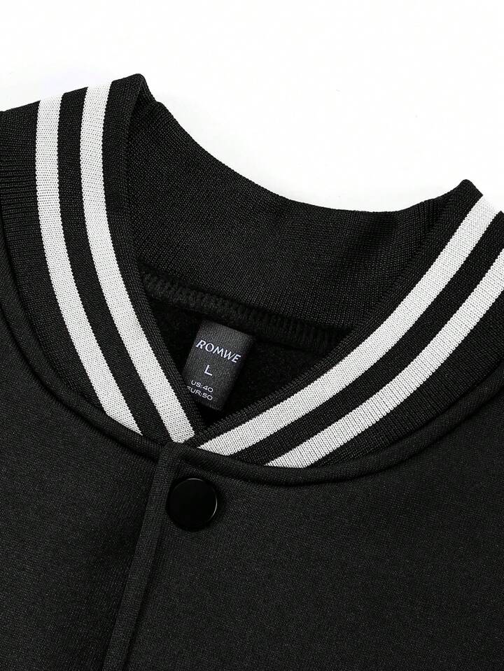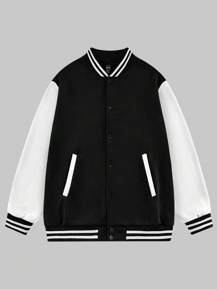 Street Life Men Letter Graphic Striped Trim Two Tone Varsity Jacket