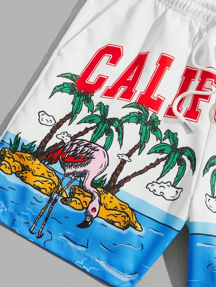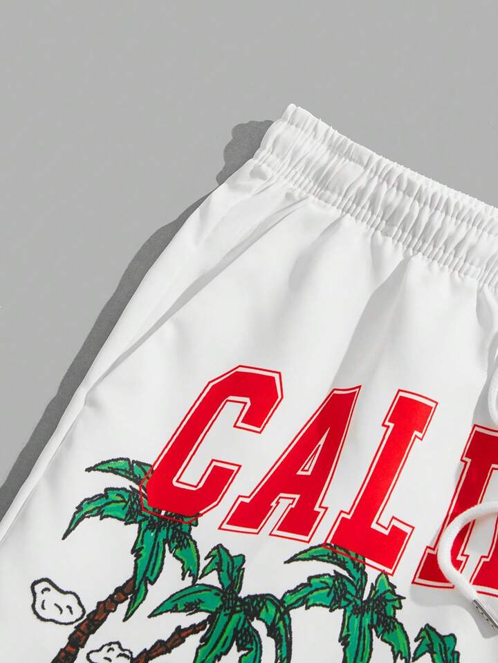 Street Life Men Letter & Palm Tree Print Drawstring Waist Shorts