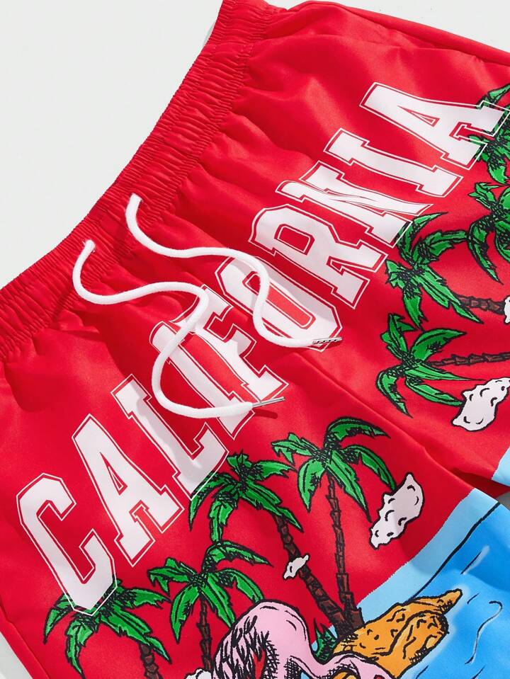 Street Life Men Letter & Palm Tree Print Drawstring Waist Shorts