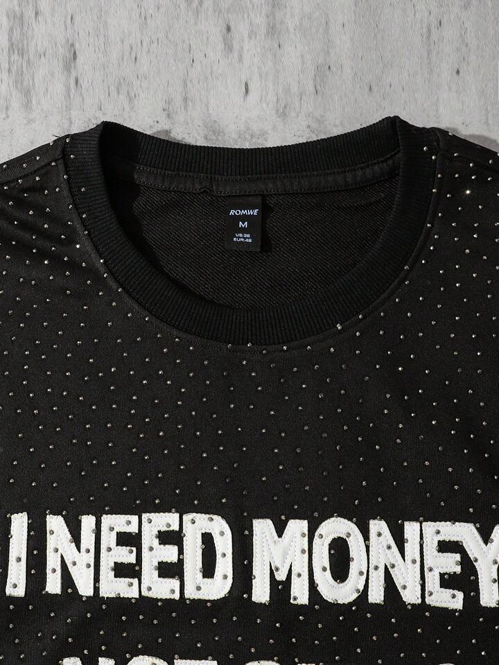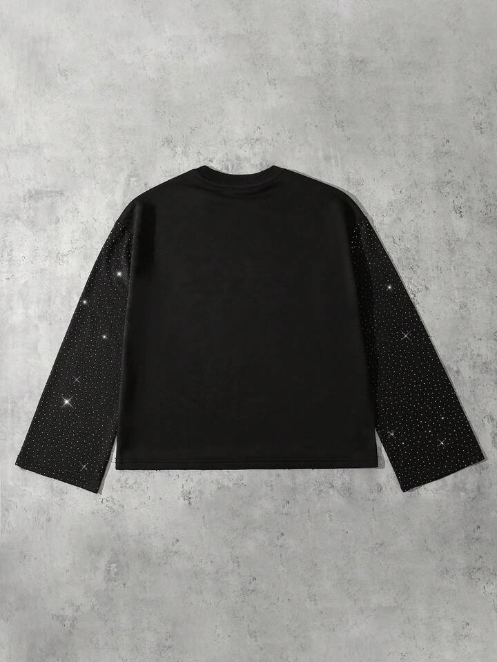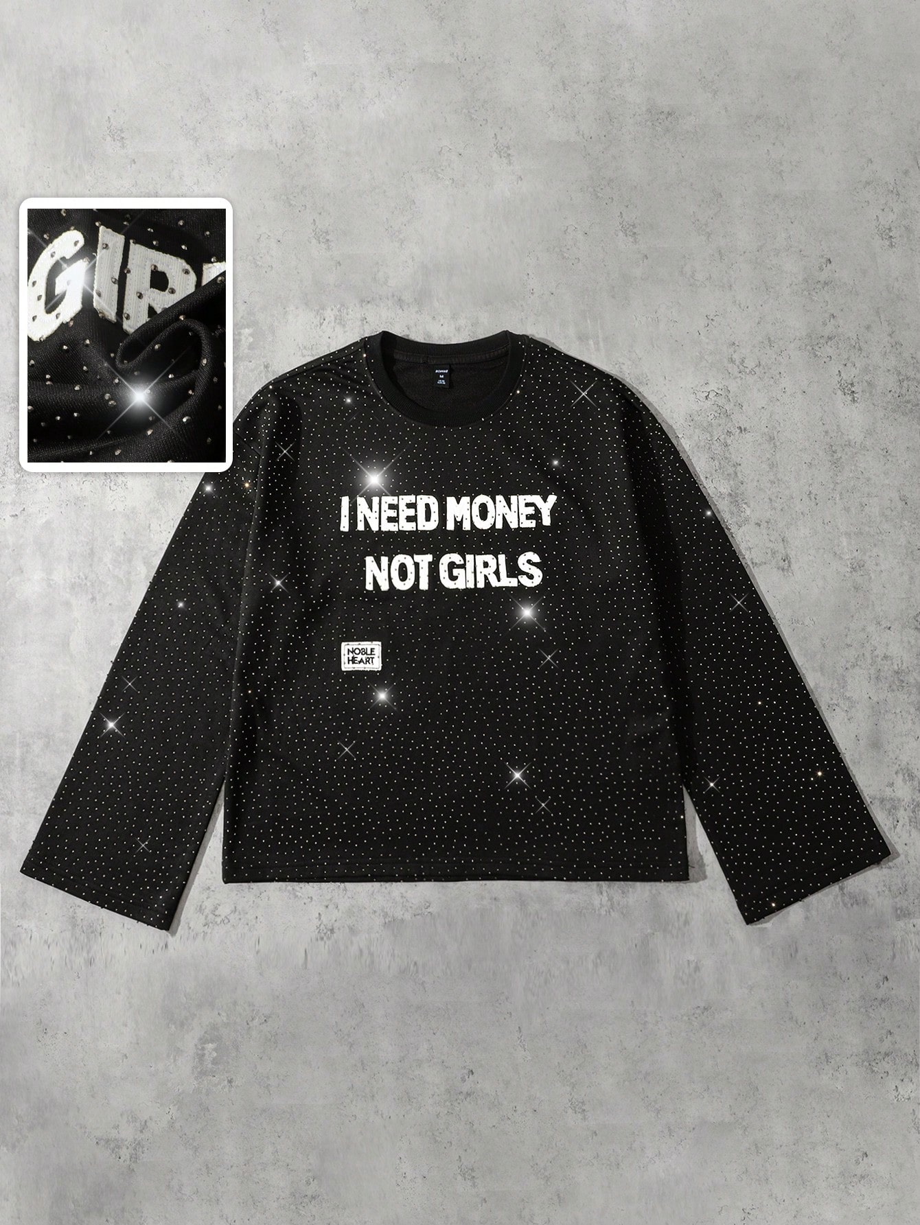 Street Life Men Loose Fit Full Glitter Diamond Long Sleeve T-Shirt, Fall
