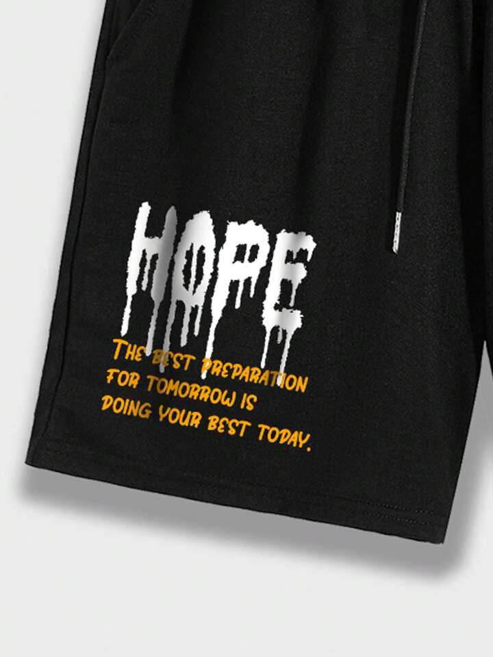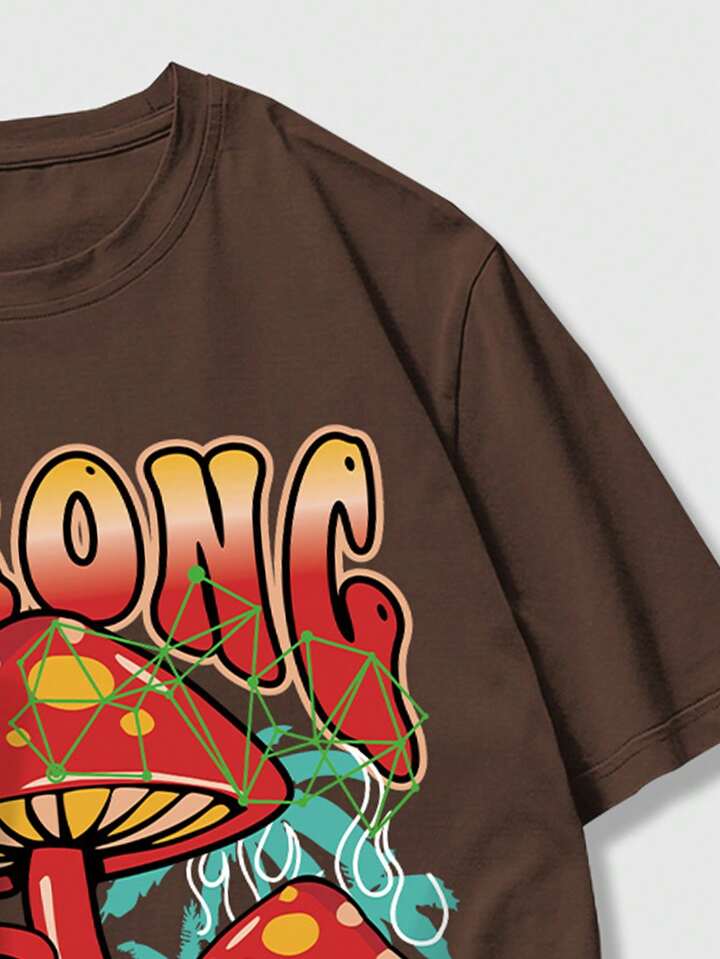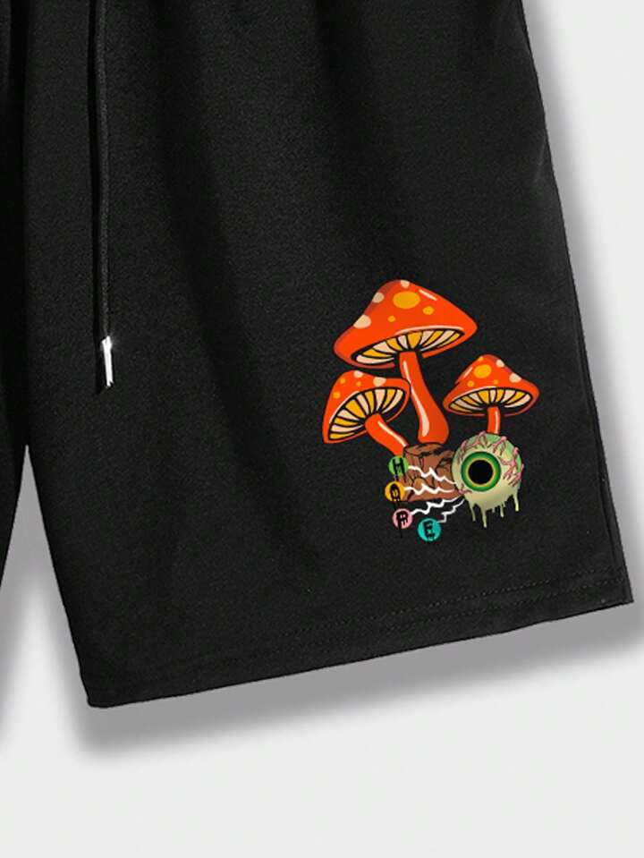 Street Life Men Mushroom Letter Graphic Tee & Drawstring Waist Shorts, School