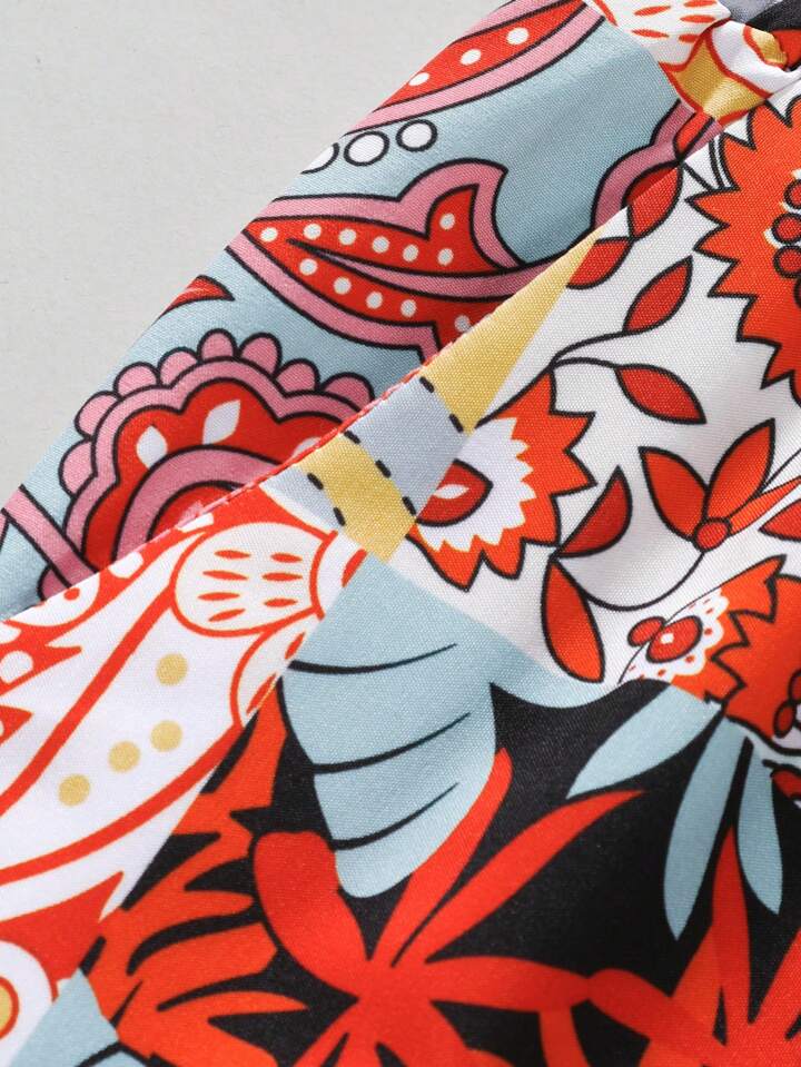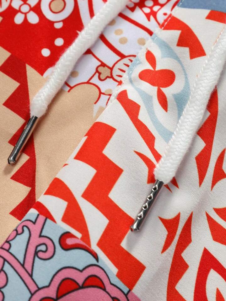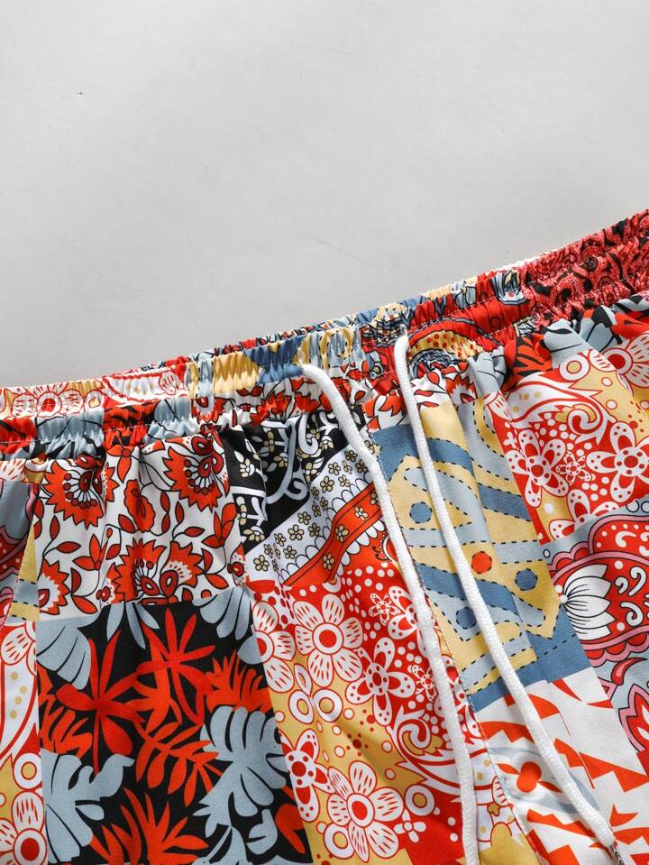 Street Life Men Patchwork Paisley Printed Drawstring Shorts For Summer Music Festival, School