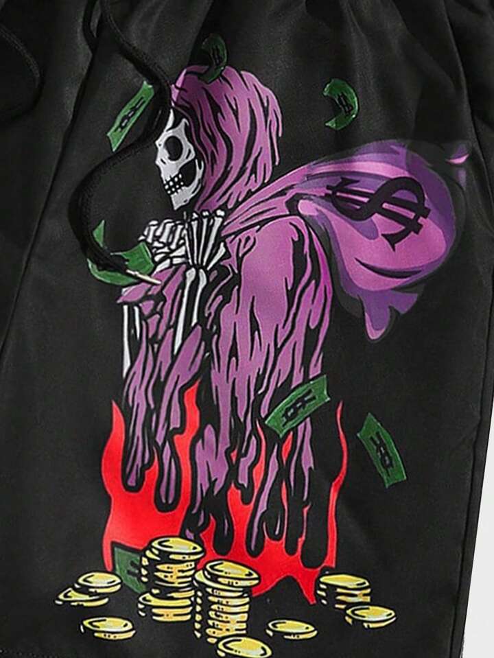 Street Life Men Skeleton Graphic Drawstring Waist Shorts