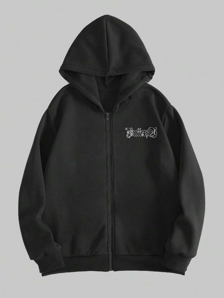 Street Life Men Slogan & Butterfly Print Thermal Hoodie