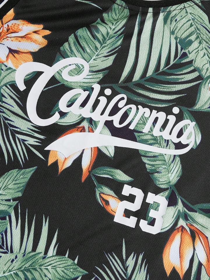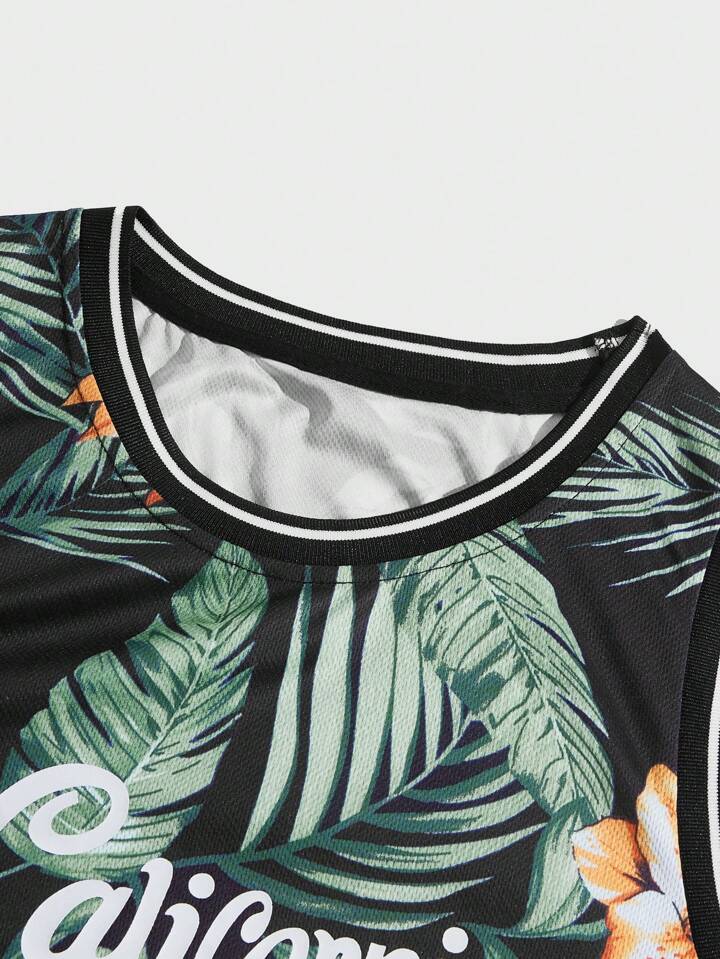 Street Life Men Tropical & Letter Graphic Striped Trim Tank Top, Basketball Jersey Style