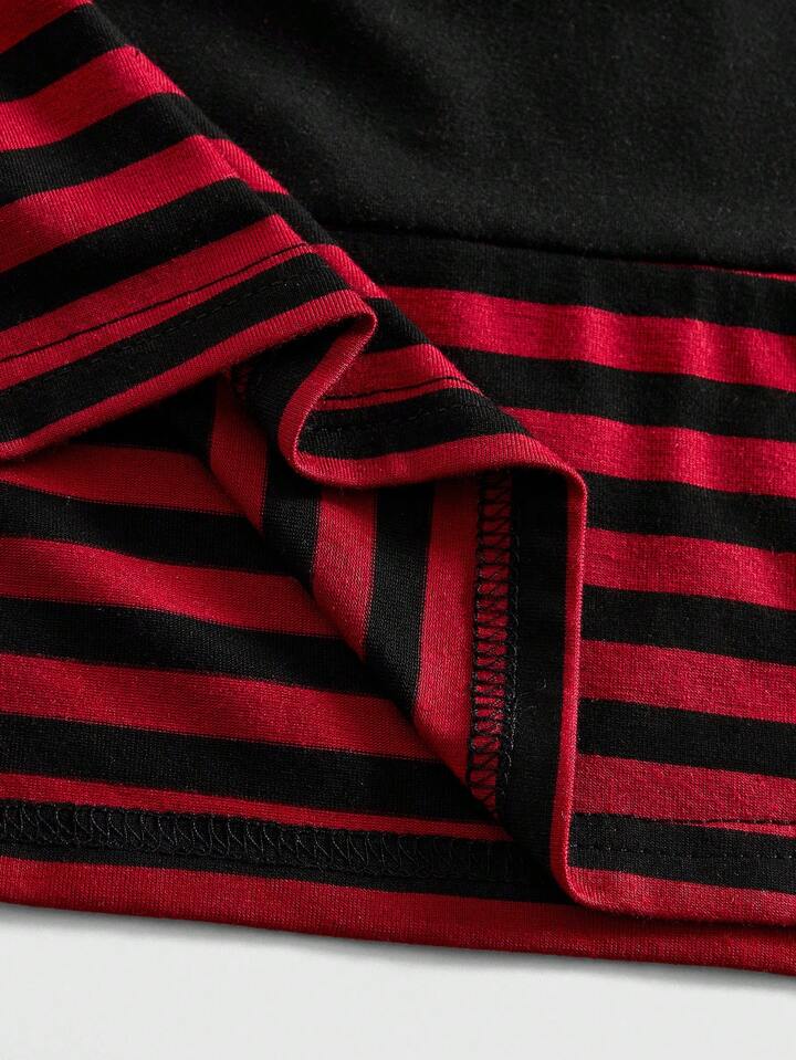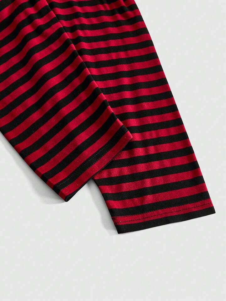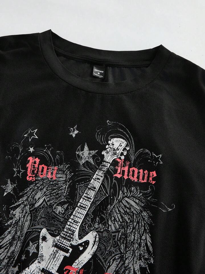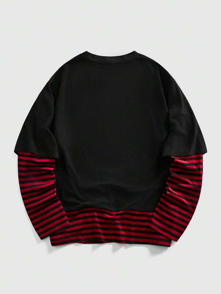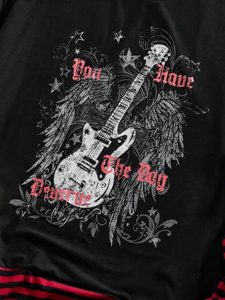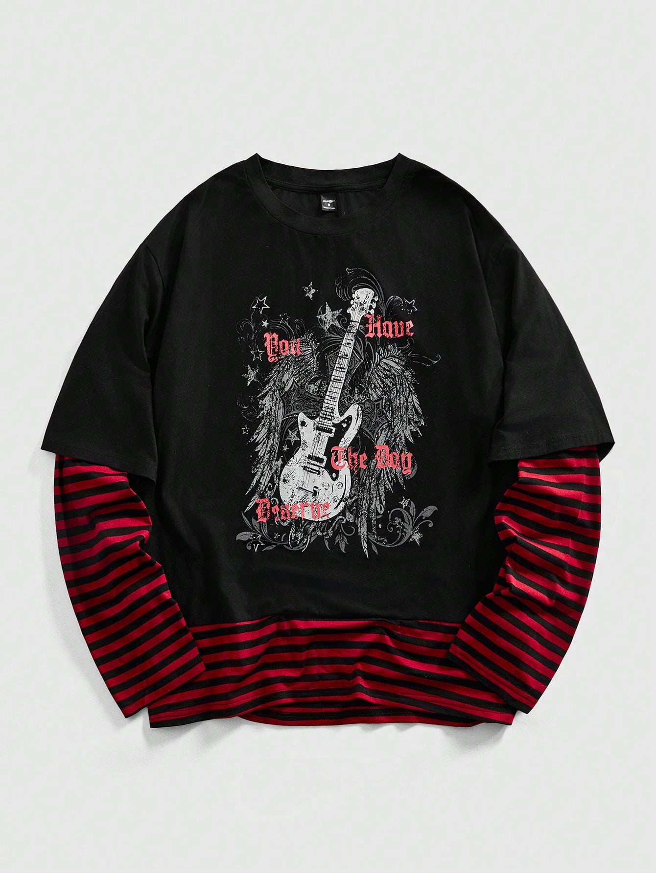 Street Life Men's 2 In 1 Striped Patchwork Guitar Print Long Sleeve T-Shirt