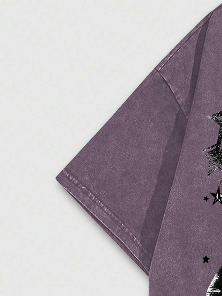 Street Life Men's Acid-Washed Portrait Printed T-Shirt, Suitable For Everyday Wear In Spring And Summer