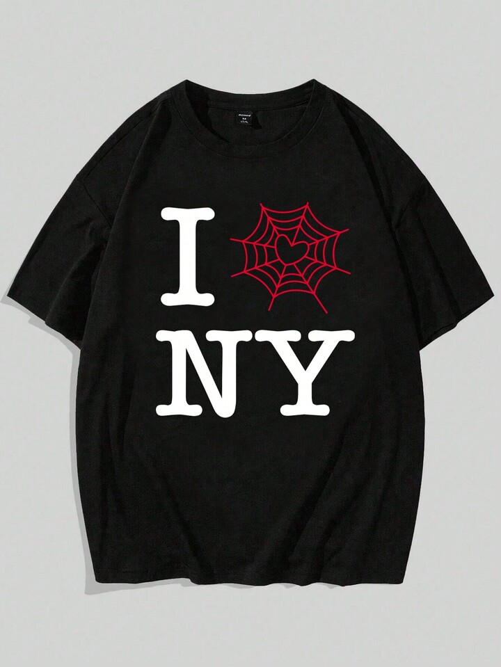 Street Life Men's Alphabet & Spider Web Printed Short Sleeve T-Shirt