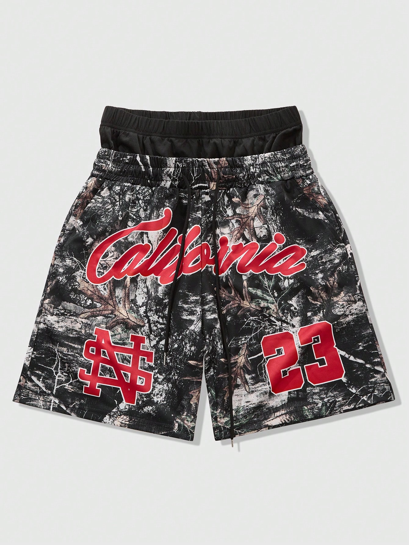 Street Life Men's American City Number Name Slogan & Tree Branch Number Print Sports Shorts,