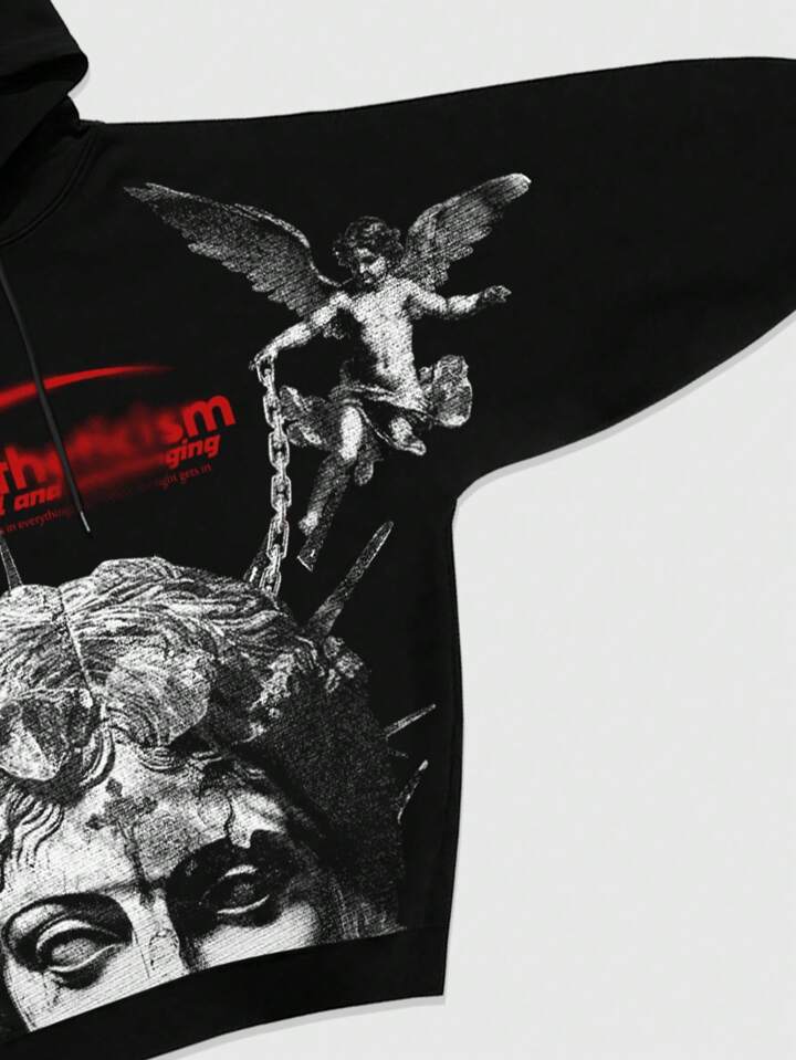Street Life Men's Angel Graphic Print Casual Long Sleeve Hoodie