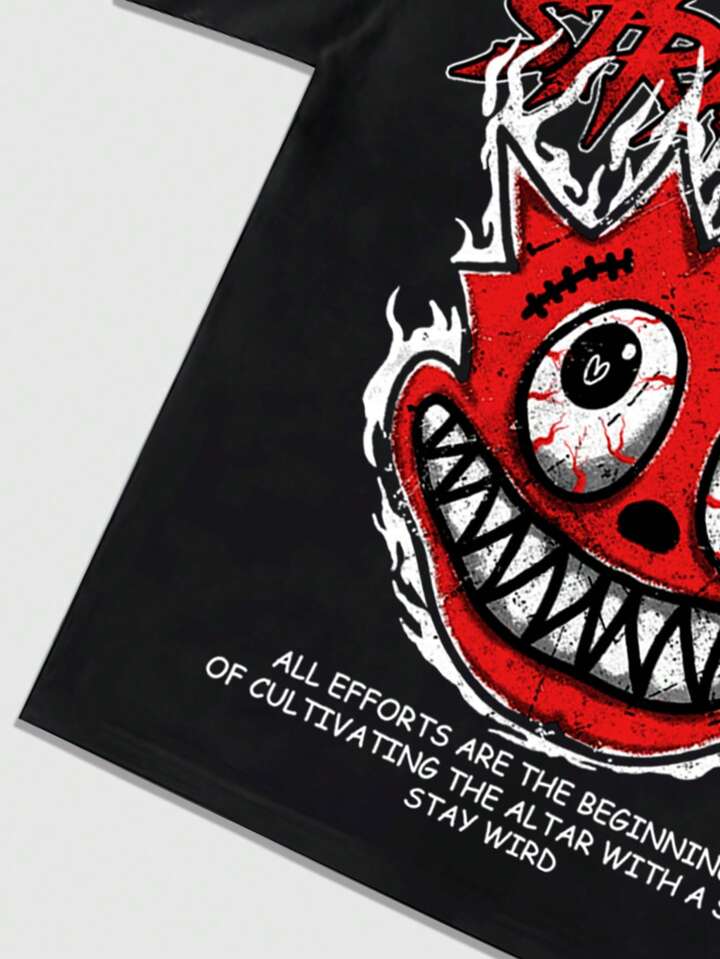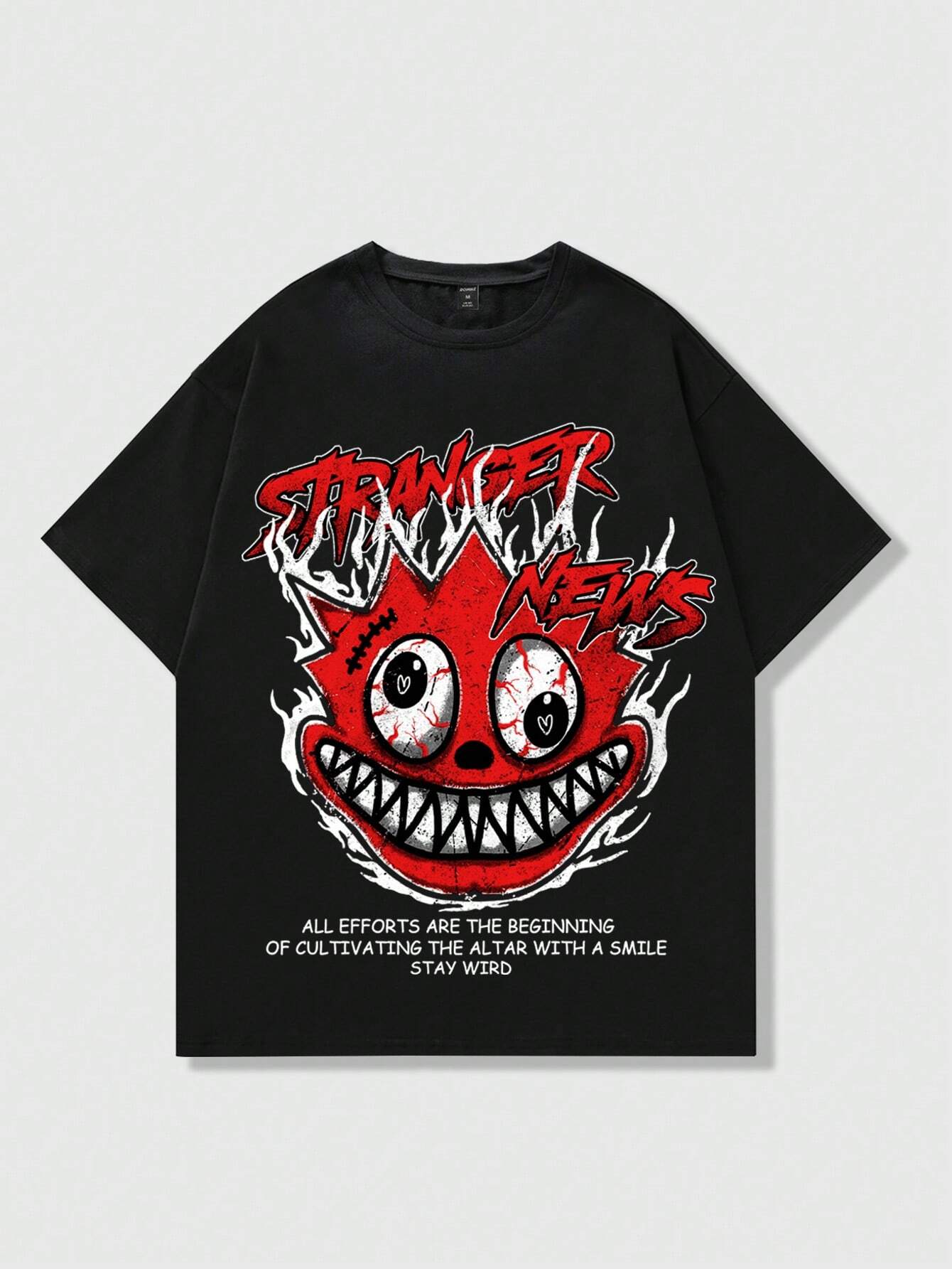Street Life Men's Angel Print Short Sleeve T-Shirt, Suitable For Everyday Wear, Spring/Summer