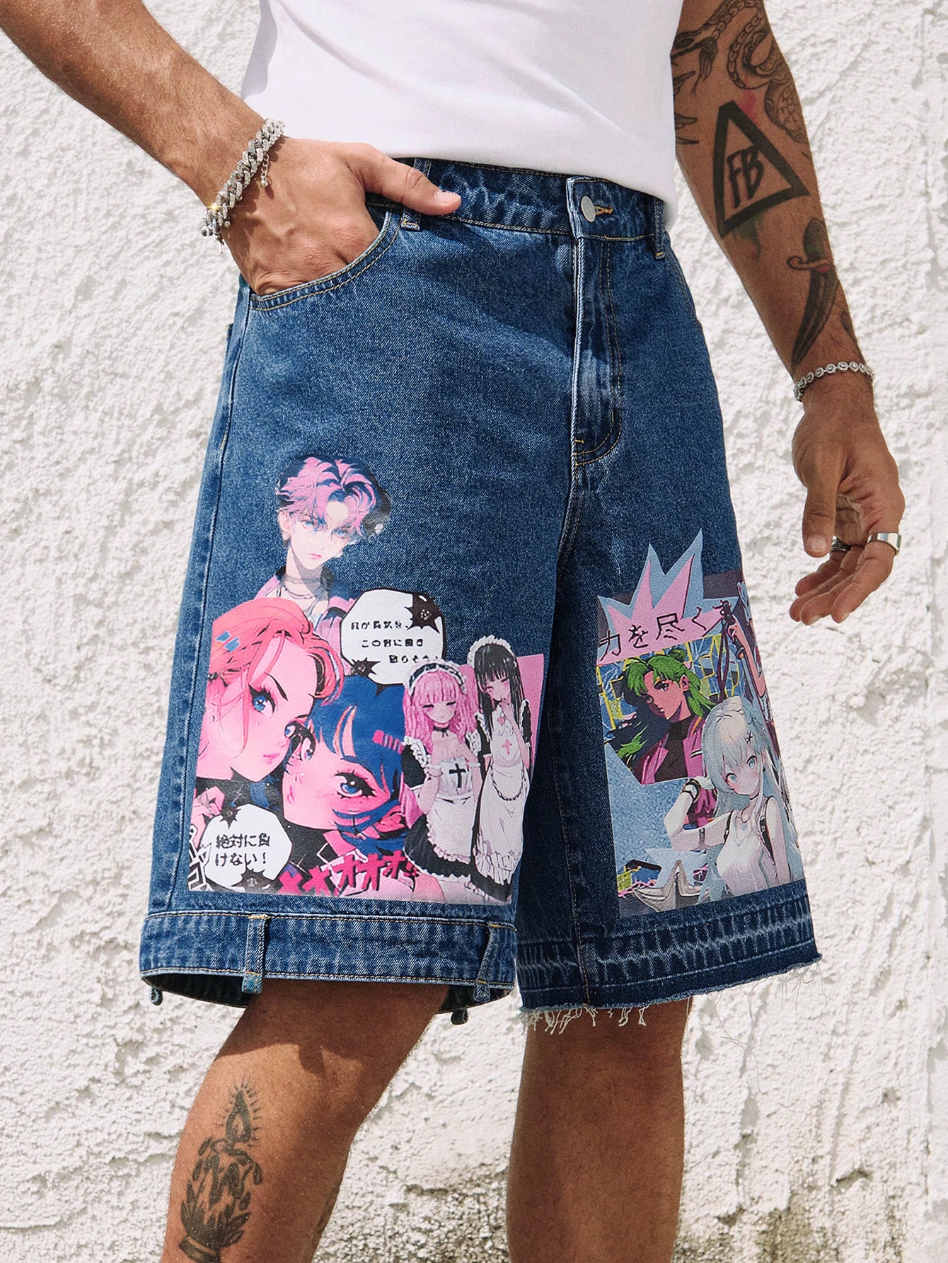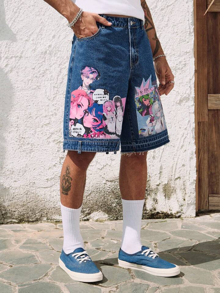 Street Life Men's Anime Denim Shorts, Fashionable For Summer