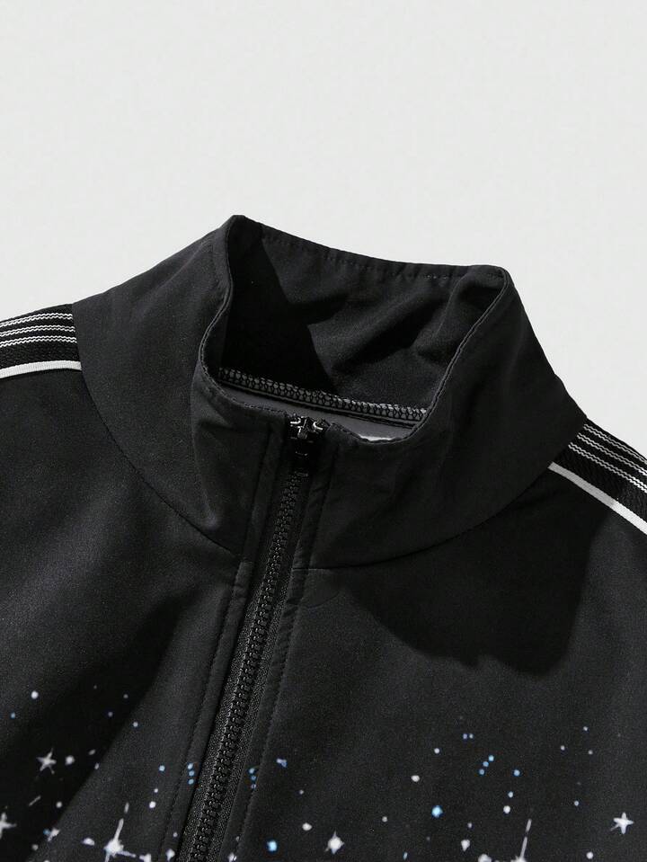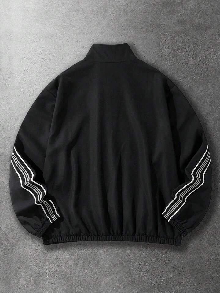 Street Life Men's Autumn Letter & Eye Print Zip-Up Casual Jacket