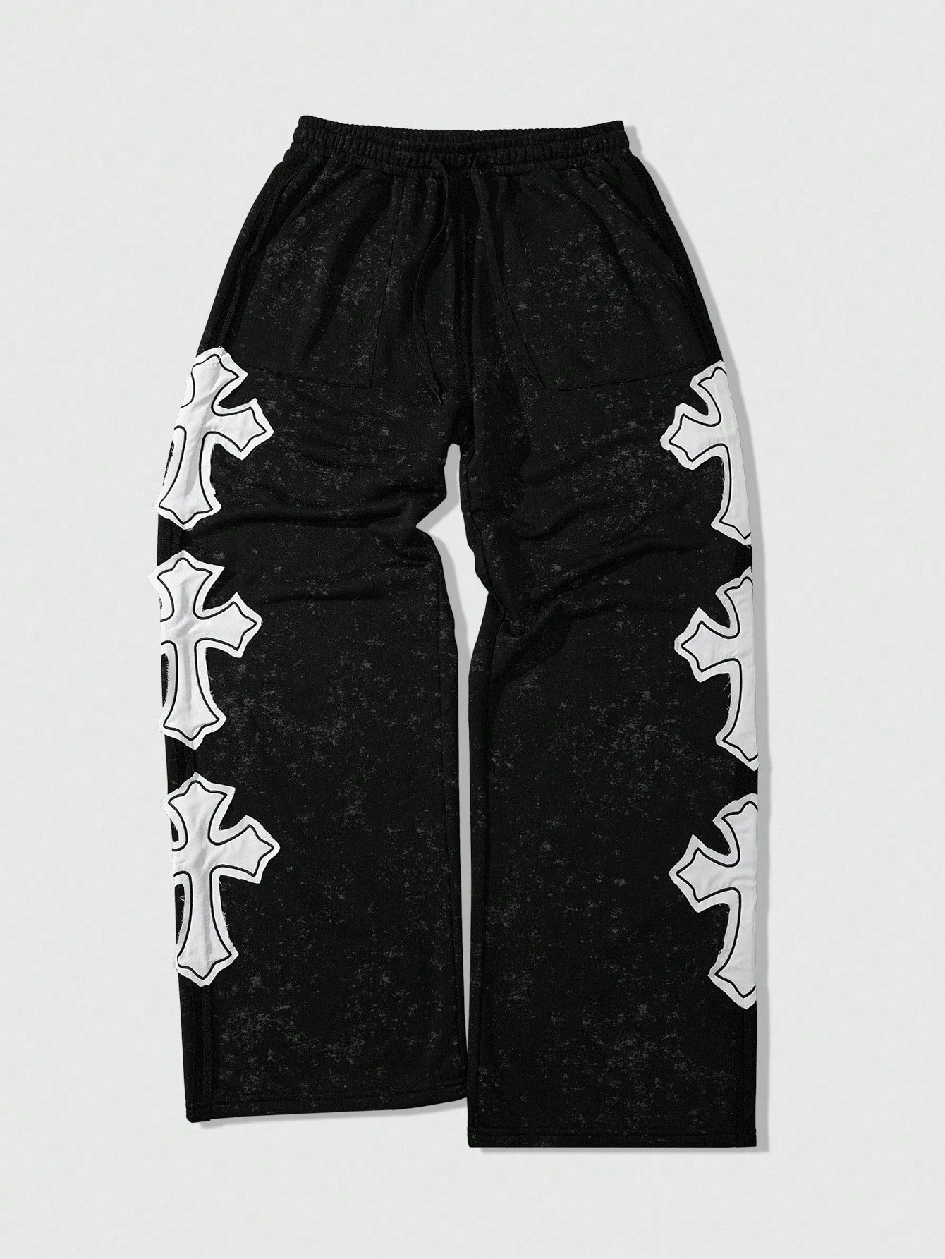 Street Life Men's Autumn/Winter Embroidered Cross Drawstring Waist Loose Sweatpants