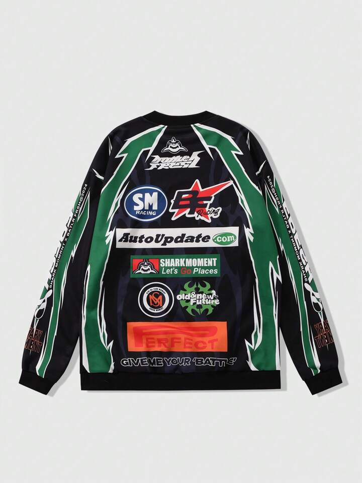Street Life Men's Autumn/Winter Letter Print Oversized Casual Crew Neck Sweatshirt