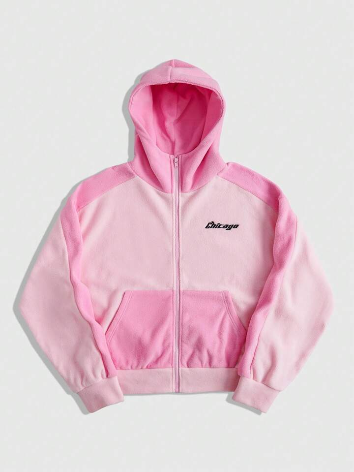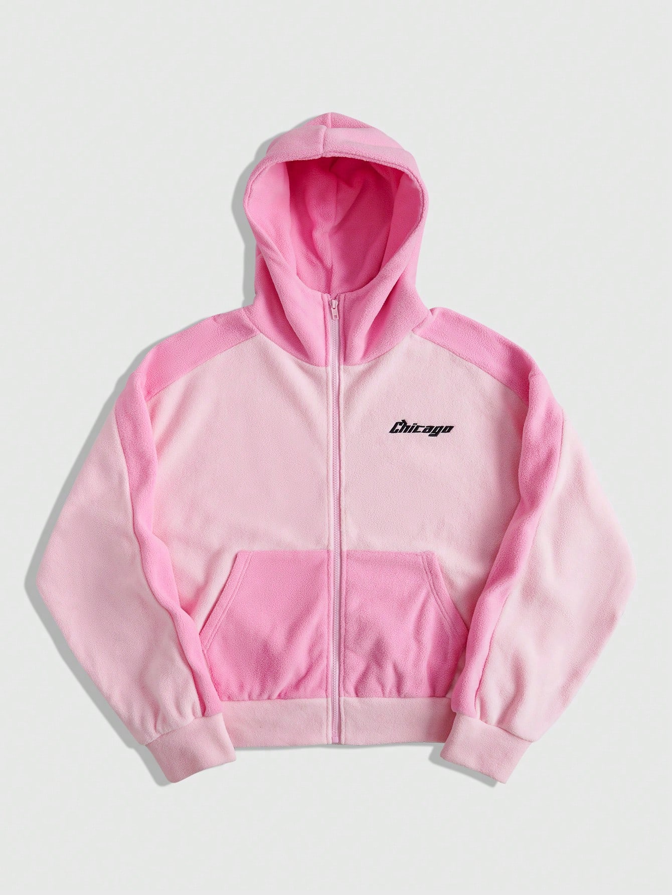 Street Life Men's Autumn/Winter Sherpa Letter Graphic Zip-Up Casual Hoodie