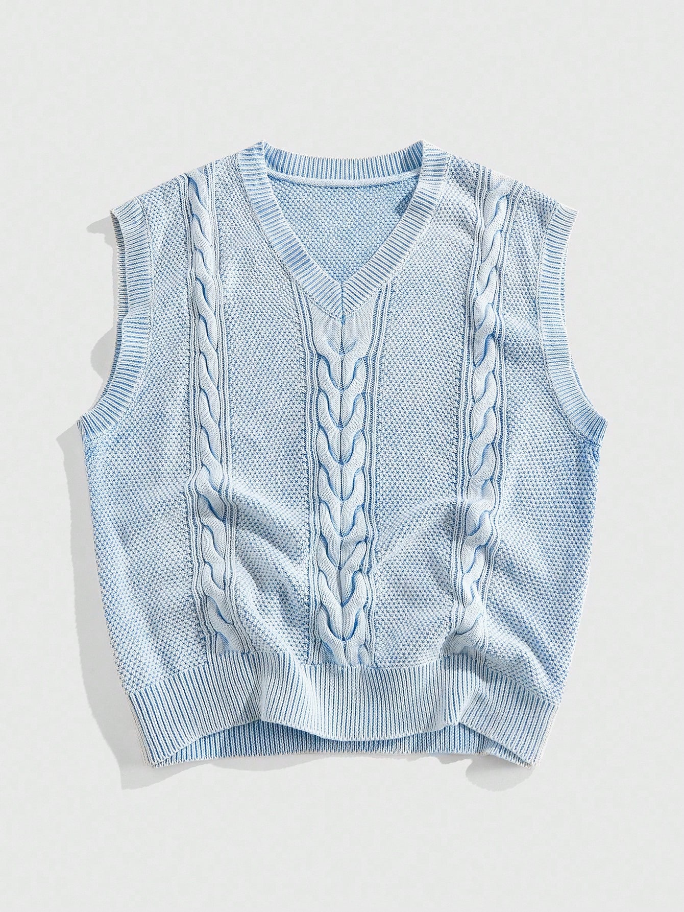 Street Life Men's Blue Sleeveless Casual Versatile Washed Knit Tank Top