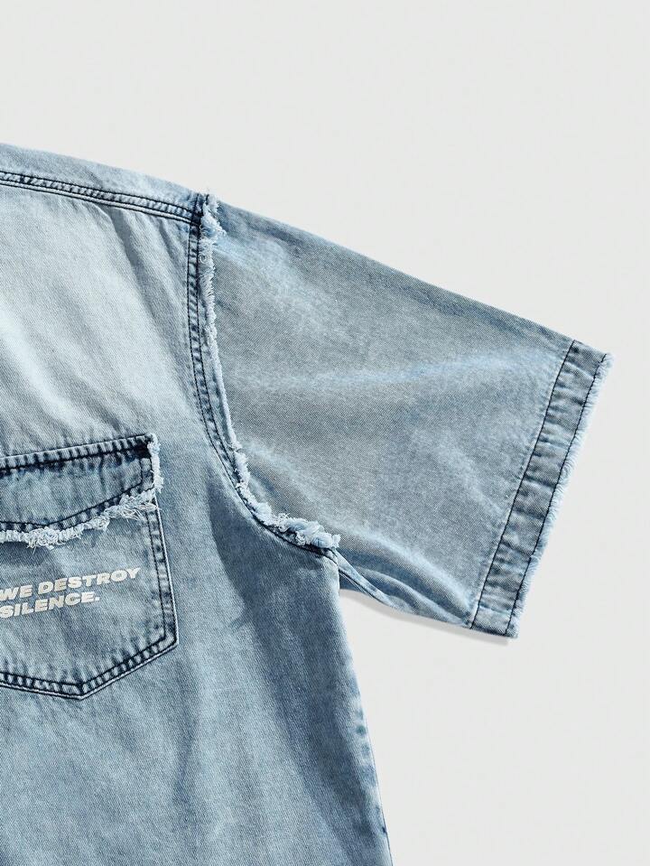 Street Life Men's Boxy Fit Printed Denim Top, Denim Short Sleeve Shirt