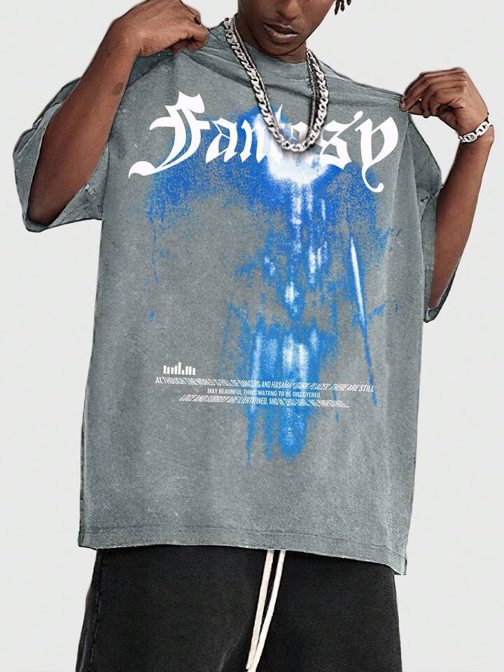 Street Life Men's Casual Acid-Washed Slogan Print T-Shirt, Summer, 2000s Style