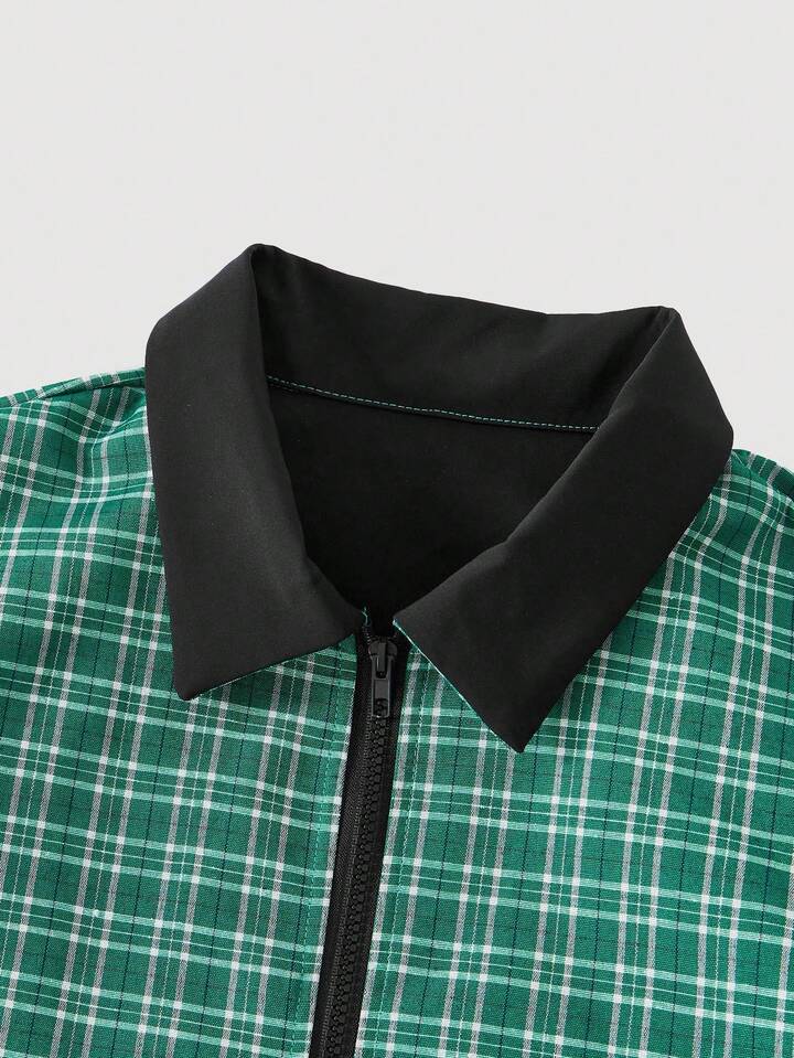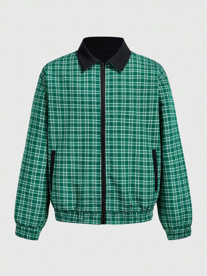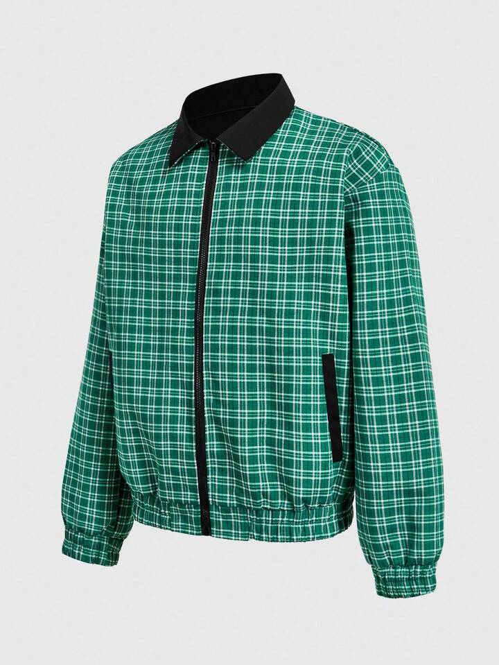 Street Life Men's Casual Collegiate Zip-Up Plaid Jacket, For Fall