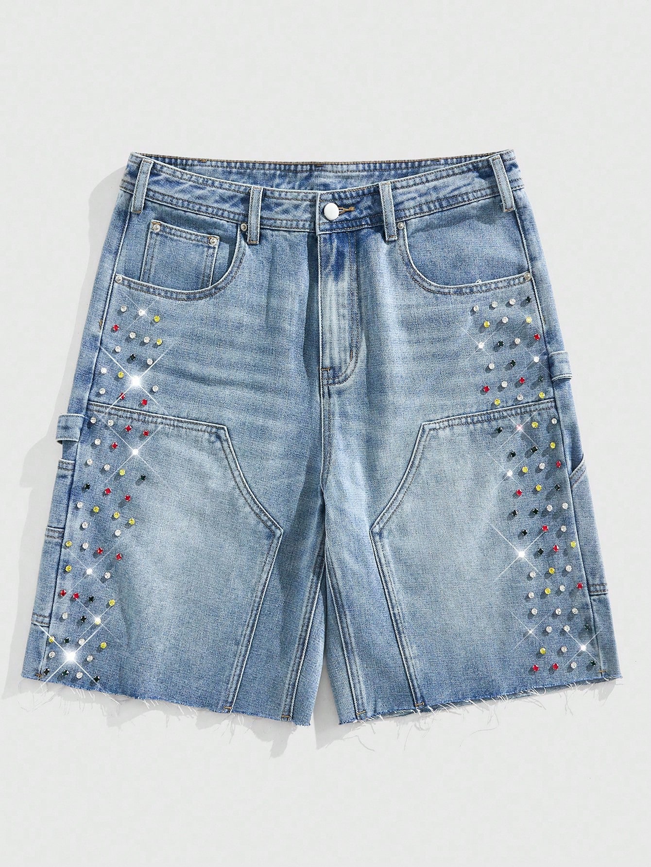 Street Life Men's Casual Diamond Decor Denim Shorts For Summer