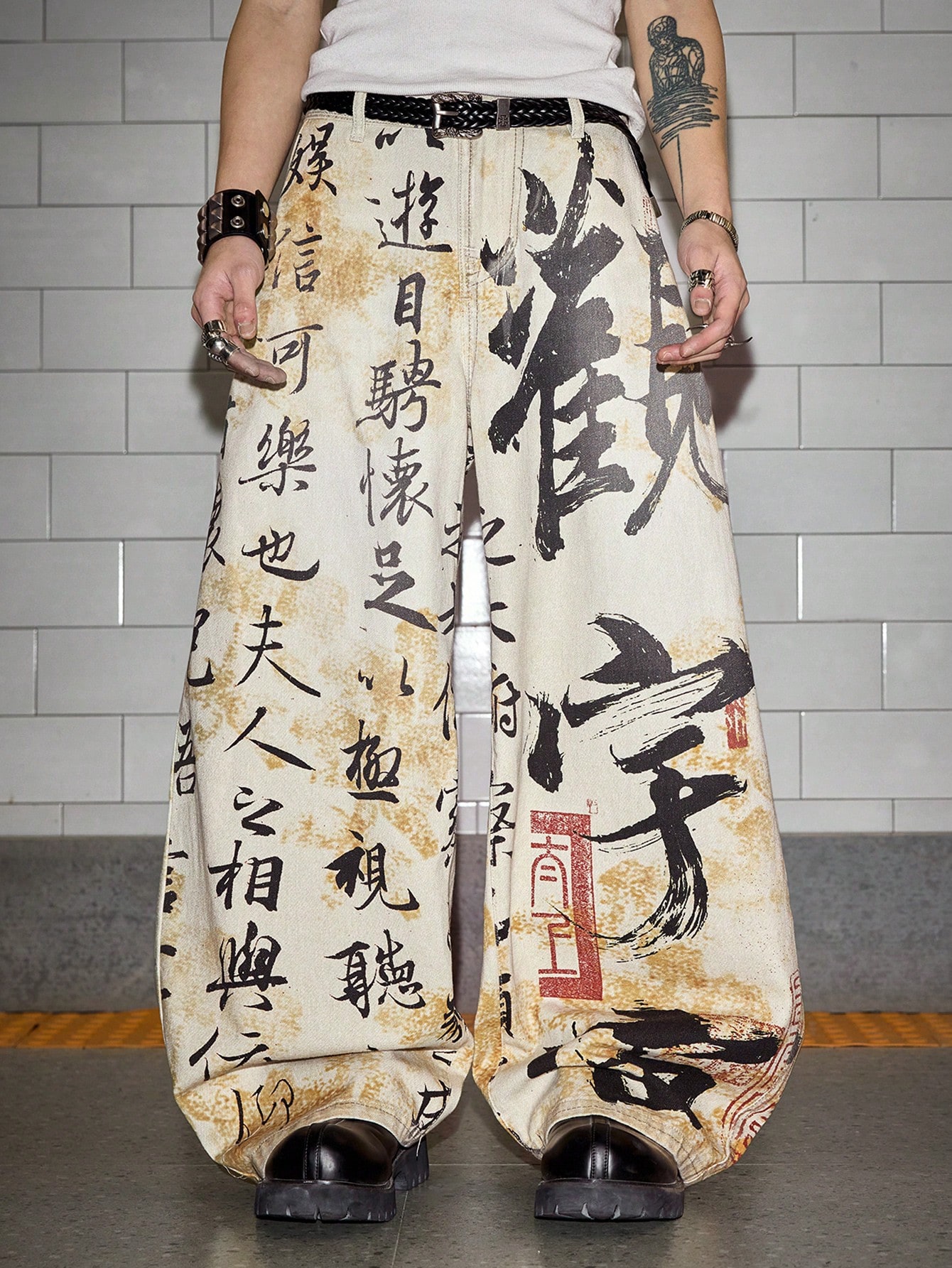 Street Life Men's Casual Digital Ink Print Denim Jeans