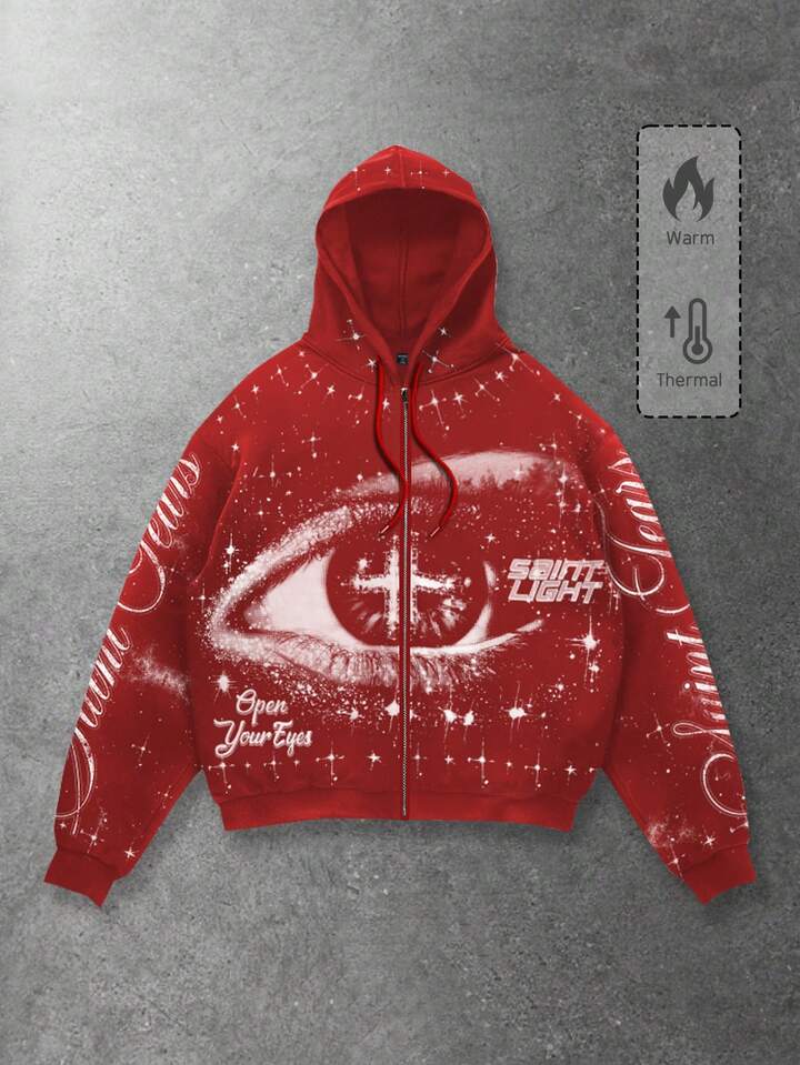 Street Life Men's Casual Drawstring Hooded Long Sleeve Punk Creative Fashion Zip-Up Hoodie Sweatshirt