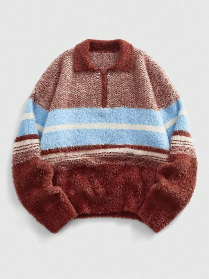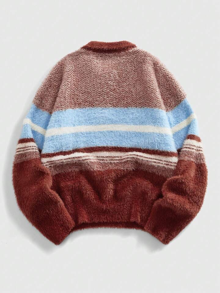 Street Life Men's Casual Faux Fur Striped Sweater, Autumn/Winter