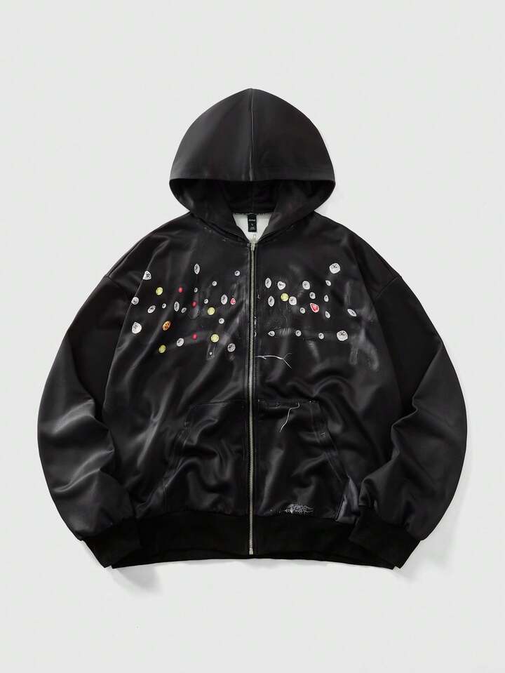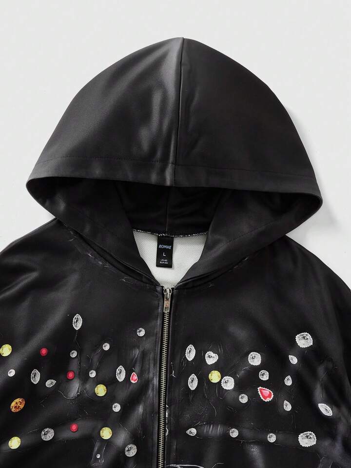 Street Life Men's Casual Faux Rhinestone Print Hoodie Sweatshirt