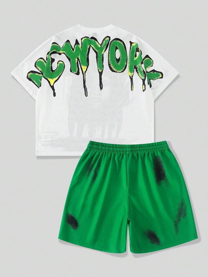 Street Life Men's Casual Figure Print T-Shirt And Shorts Set, Summer