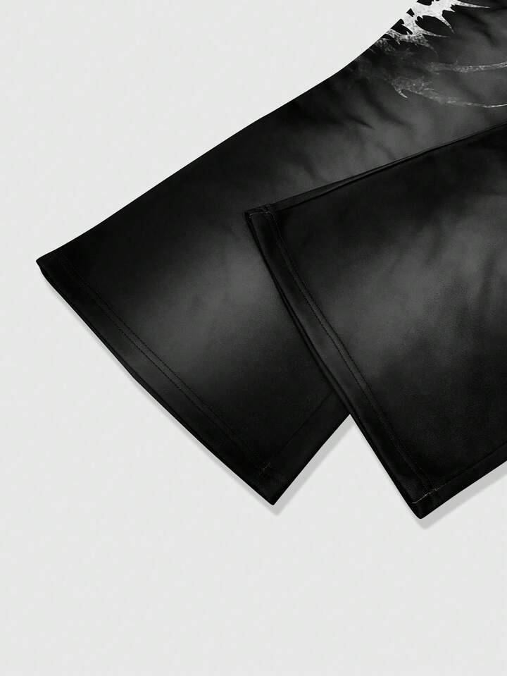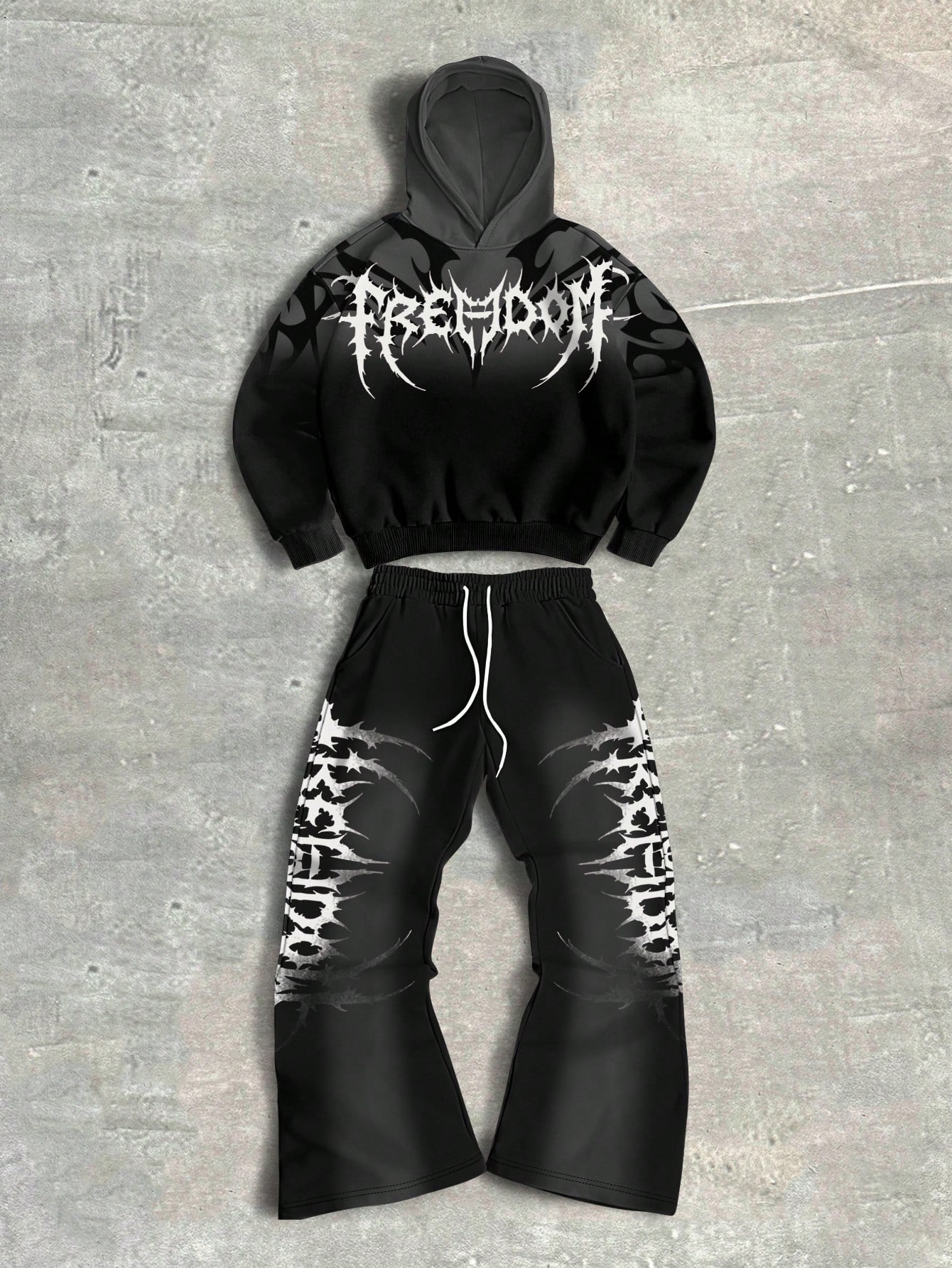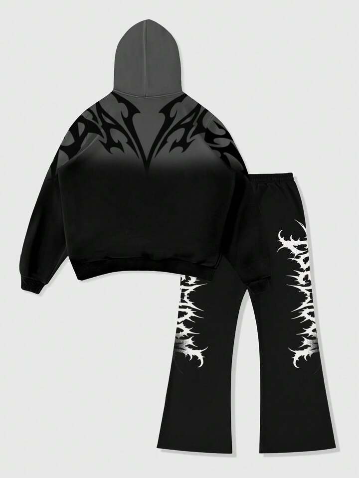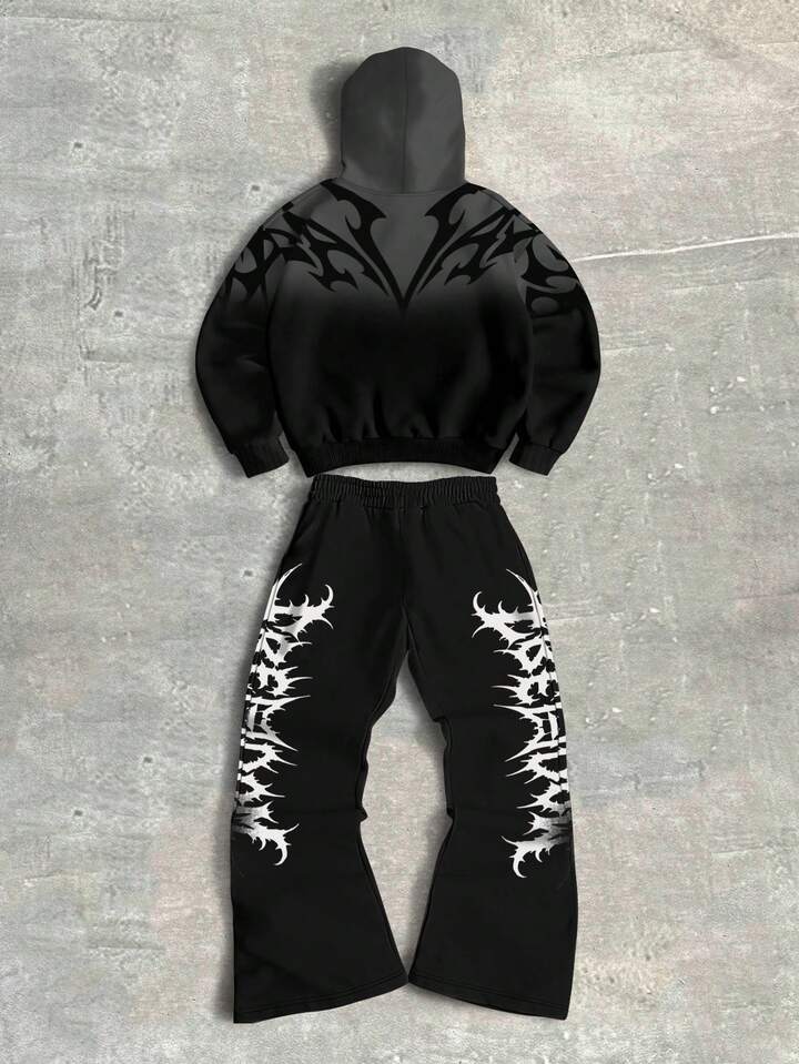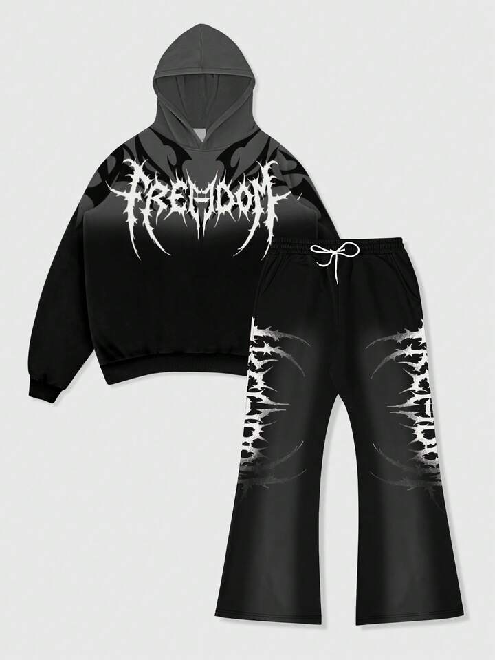 Street Life Men's Casual Gothic Gradient Letter Print Hoodie And Drawstring Waist Pants Set, Autumn
